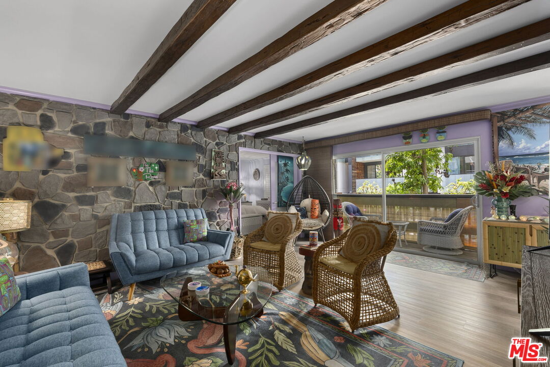 This recently remodeled 2BR/2BA condo blends the playful charm of 1960s Tiki style with modern luxury, nestled in West Hollywood's highly coveted Norma Triangle neighborhood. Every corner of this home reflects a careful attention to detail, capturing the spirit of mid-century design while offering many modern conveniences. The HOA permits washer/dryer installation inside units in this building. The bright, airy living room welcomes you with warm wood accents and a tropical vibe, guiding you out through sliding glass doors onto a spacious balcony with views of a tranquil tree-lined street. These seamless transitions between indoor and outdoor spaces invite the California breeze into your home. The kitchen is both functional and chic, featuring stainless appliances along with sleek cabinetry and countertops that complement the condo's vintage allure. Retreat to the spacious en-suite main bedroom, where you'll find a large walk-in closet and a spa-inspired bath, creating your own personal oasis. The second bedroom and bath are positioned for ultimate privacy, perfect for guests or creating a serene home office. With wood floors, designer lighting and bath fixtures, and two side-by-side parking spaces, this condo is a rare gem in a prime location. Embrace the relaxed yet sophisticated atmosphere of mid-century Tiki living, just steps away from the best of West Hollywood.Interested in this Listing?