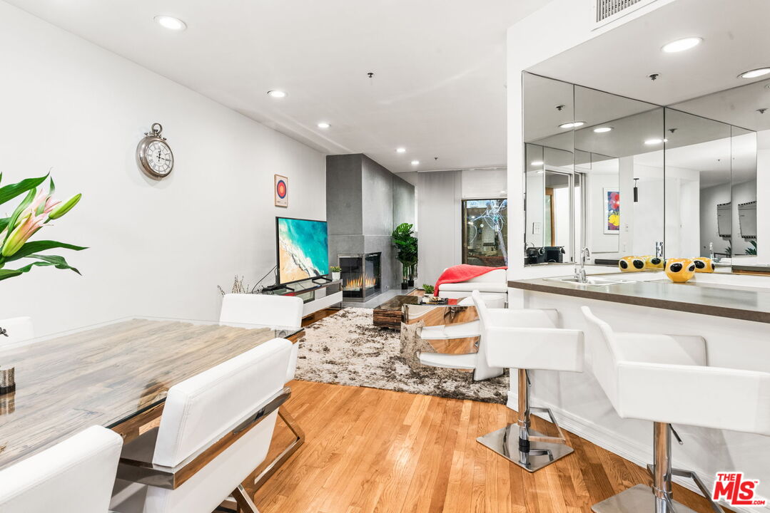 Your contemporary oasis awaits you on a quiet street just above the bustling Sunset Strip and iconic Sunset Plaza. Unit #107 at Vista Larrabee boasts 2 bed, 2 bath, 1,432 sf of modern living, complete with 2 secure side-by-side parking with storage, in-unit washer & dryer, and the list goes on! Upon entering, you will be welcomed by gleaming real hardwood floors illuminated by recessed lighting that leads into your idyllic open-concept condo home. Prepare food for guests in your chef's kitchen featuring caesarstone countertops, stainless steel appliances (a double door fridge, stove with microwave, dishwasher, and wine fridge), pantry, and breakfast nook. Serve guests effortlessly in your spacious dining room adorned with modern light fixtures, or mix drinks at the wet bar! Relax in your expansive, mirror-lined living room with sleek fireplace. A standout feature is the sizable patio that spans the entire length of the condo and access from every room! Retire in luxury to the primary bedroom with several closets (including a walk-in) and a masterfully renovated ensuite bathroom with a dual vanity, stylish tiles and fixtures, and a grand shower! The second bedroom also with patio access, is located across from the updated hallway bathroom and laundry closet and will leave your guests impressed. Built in 1982, this stylishly updated building offers fantastic amenities including a rooftop deck with breathtaking views, a BBQ grill, and patio furniture perfect for lounging under the starry night sky. Decompress in the sauna after a workout in the outdoor gym with updated equipment. HOA dues include water, trash, sewer, and earthquake insurance! Nestled just off the famed Sunset Strip, this prime location puts you steps from Equinox, EV charging stations, SoHo House, the Viper Room, and all the bars, restaurants, and entertainment that West Hollywood is known for. Don't miss your chance to experience the buzz and luxury of Sunset Plaza living! Schedule a showing today!Interested in this Listing?