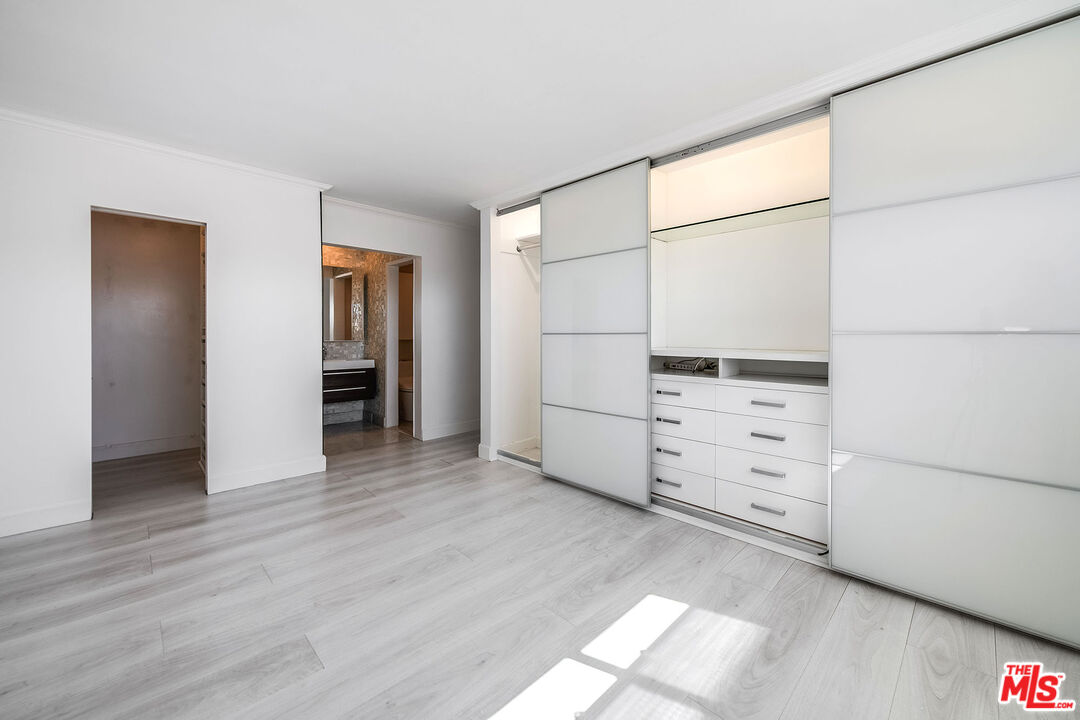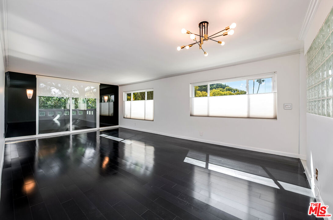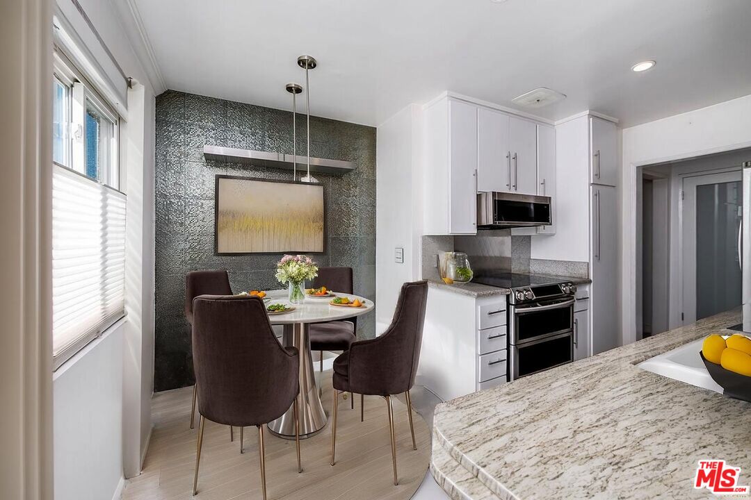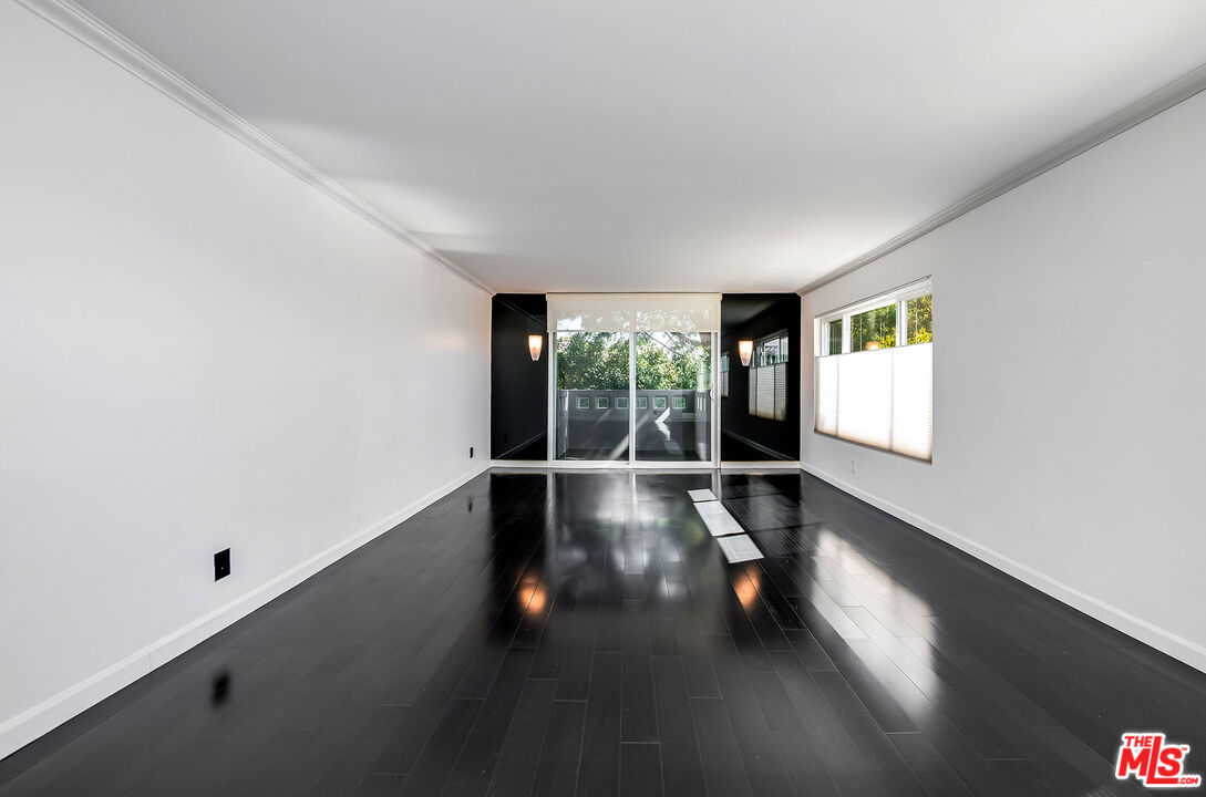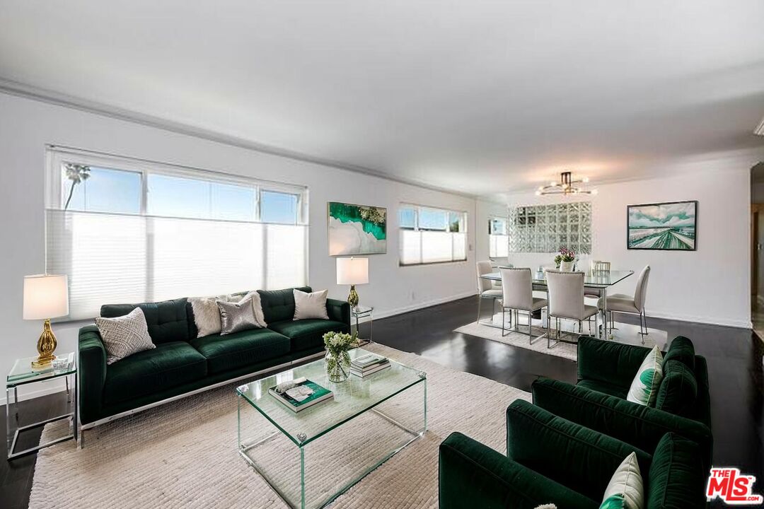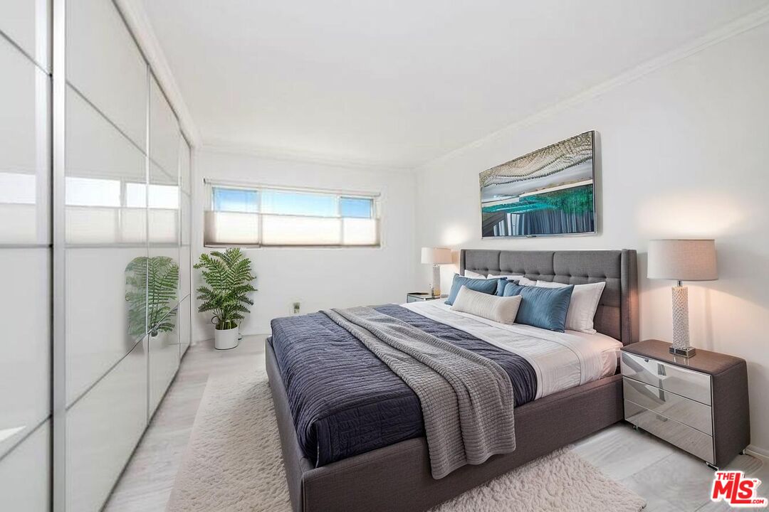 Welcome to this stunning front-facing corner unit, where a private balcony overlooks one of West Hollywood's most picturesque tree-lined streets. Thoughtfully updated and designer-done, this residence is bathed in natural light, highlighting its sophisticated ambiance and curated interiors. The open-concept living and dining area features sleek black hardwood floors, a MCM light fixture, and a striking black glass accent wall with Italian white sconce lighting. Sliding glass doors lead to your private balcony, seamlessly blending indoor and outdoor living. The modern kitchen boasts Carrara marble flooring, stainless steel appliances, pull-out chrome storage, contemporary lighting, a tiled accent wall, and a spacious pantry. The primary suite offers a custom walk-in closet and built-in wall unit with additional storage, while a six-drawer center unit, wired for a TV, adds style and function. The secondary bedroom is ideal as a guest suite or home office, featuring a built-in wall unit, desk, and Murphy Bed. Six well-appointed closets provide ample storage, while premium upgrades include Hunter Douglas blinds, dual-pane UV-protected windows with a transferable lifetime guarantee, and a chic built-in bar. This unit also allows for an in-unit washer and dryer - a rare luxury in the area. Additional perks include two side-by-side parking spaces with storage and access to a furnished outdoor common area, perfect for entertaining. Located within walking distance to premier shopping, renowned dining, top-rated gyms, and vibrant nightlife, this exceptional residence offers the perfect blend of comfort, convenience, and upscale living. Experience the pinnacle of modern luxury in this exceptional West Hollywood condo!Interested in this Listing?