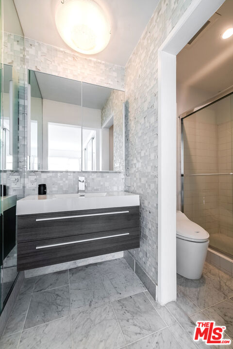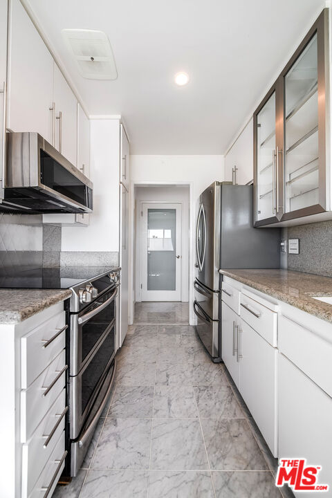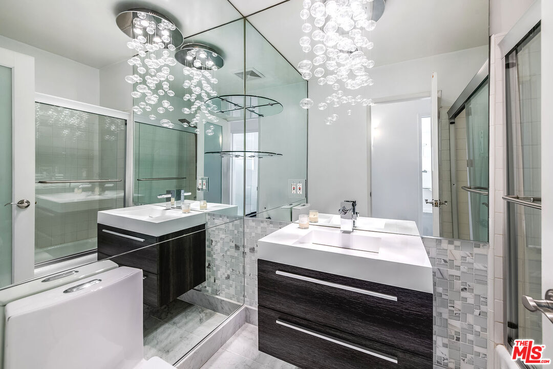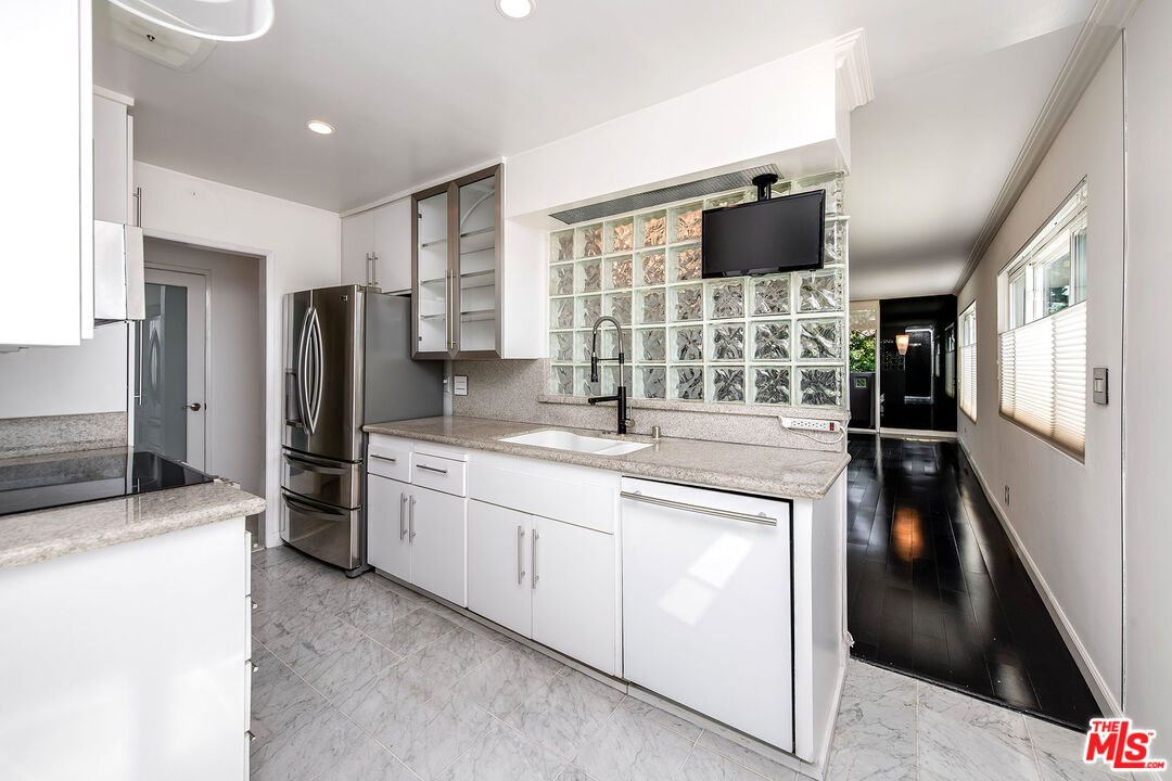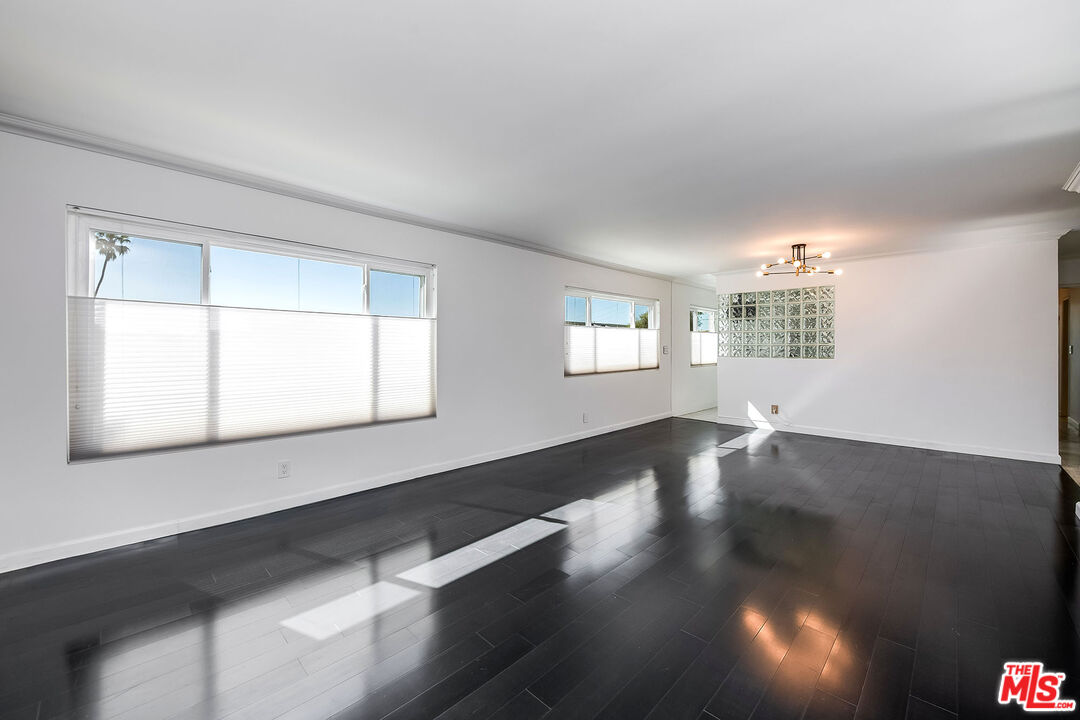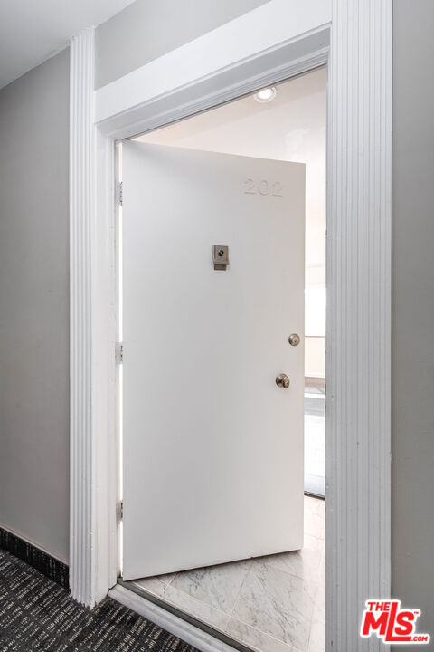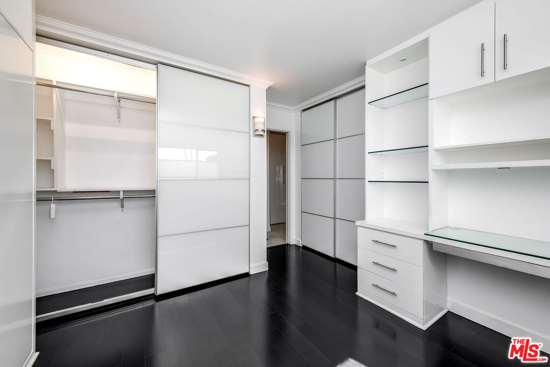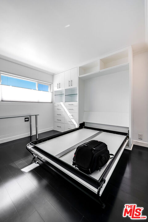 Welcome to this stunning front-facing corner unit, where a private balcony overlooks one of West Hollywood's most picturesque tree-lined streets. Thoughtfully updated and designer-done, this residence is bathed in natural light, highlighting its sophisticated ambiance and curated interiors. The open-concept living and dining area features sleek black hardwood floors, a MCM light fixture, and a striking black glass accent wall with Italian white sconce lighting. Sliding glass doors lead to your private balcony, seamlessly blending indoor and outdoor living. The modern kitchen boasts Carrara marble flooring, stainless steel appliances, pull-out chrome storage, contemporary lighting, a tiled accent wall, and a spacious pantry. The primary suite offers a custom walk-in closet and built-in wall unit with additional storage, while a six-drawer center unit, wired for a TV, adds style and function. The secondary bedroom is ideal as a guest suite or home office, featuring a built-in wall unit, desk, and Murphy Bed. Six well-appointed closets provide ample storage, while premium upgrades include Hunter Douglas blinds, dual-pane UV-protected windows with a transferable lifetime guarantee, and a chic built-in bar. This unit also allows for an in-unit washer and dryer - a rare luxury in the area. Additional perks include two side-by-side parking spaces with storage and access to a furnished outdoor common area, perfect for entertaining. Located within walking distance to premier shopping, renowned dining, top-rated gyms, and vibrant nightlife, this exceptional residence offers the perfect blend of comfort, convenience, and upscale living. Experience the pinnacle of modern luxury in this exceptional West Hollywood condo!Interested in this Listing?