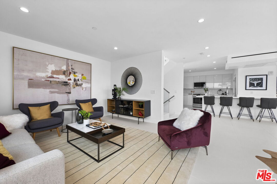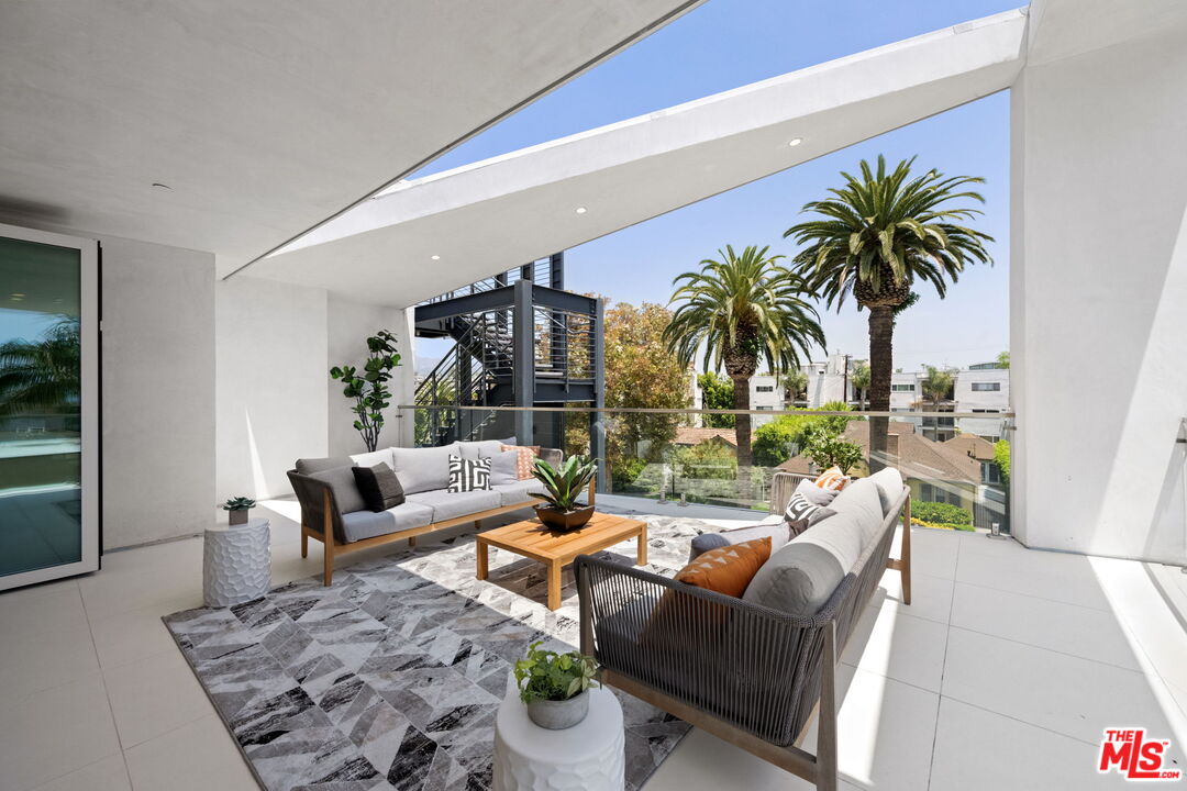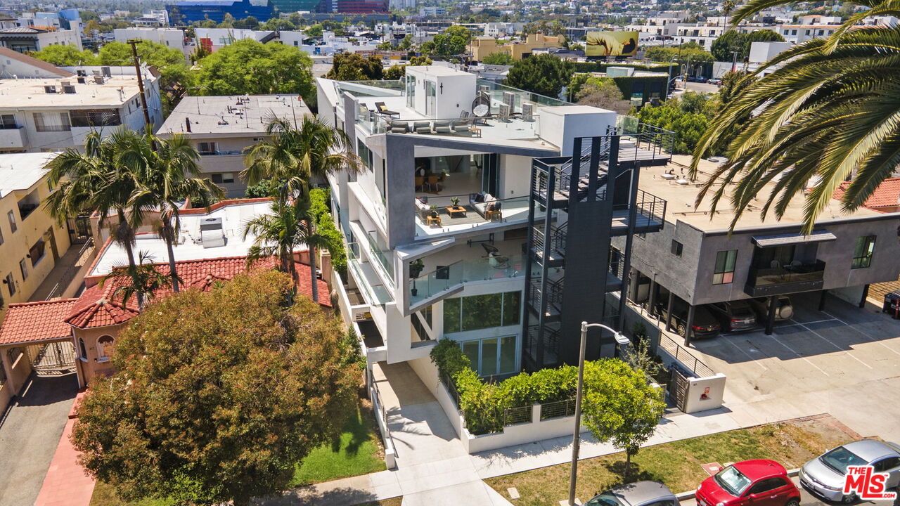 Welcome to THE TITANIUM! Unit 3, named Rhodium, is a stunning three-story penthouse and a truly one-of-a-kind architectural gem perched atop a boutique four-unit building just moments from the iconic Melrose Place. More than just a home, this unique residence is a livable art piece that simply cannot be replicated. In addition to the interior square footage, the unit offers over 1,030 square feet of private outdoor patio space, featuring multiple areas, including a spacious living room patio, a shared patio connecting both primary suites, and another conveniently located just off the kitchen. The residence also boasts exclusive access to a private rooftop retreat, offering ample space to entertain while taking in panoramic 360-degree views of Los Angeles, from the hills to the skyline. Inside, the bright and open layout is thoughtfully designed with seamless indoor-outdoor flow, creating an elevated and expansive living experience. The home features two matching primary suites, each with direct access to the large lower patio, ideal for a private gym, lounge, or flexible outdoor retreat. Additional highlights include two side-by-side parking spaces in a secure garage and direct elevator access for ultimate privacy and convenience. Set in one of LA's most coveted neighborhoods, surrounded by world-class shopping, dining, and design destinations, this rare penthouse stands alone in style, location, and creative spirit. A singular West Hollywood retreat not to be missed.Interested in this Listing?