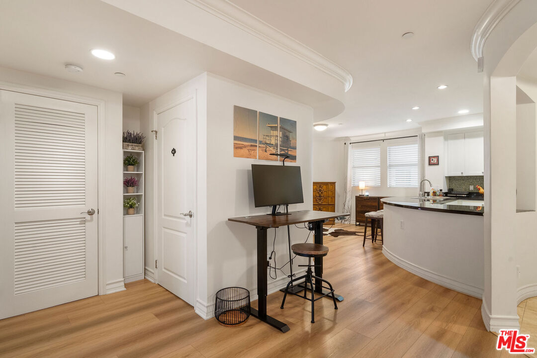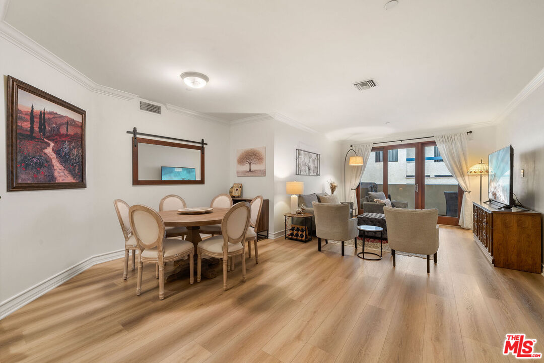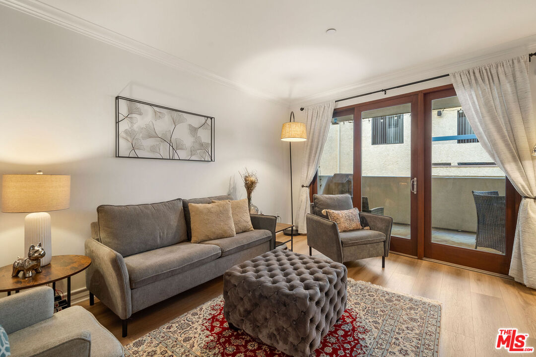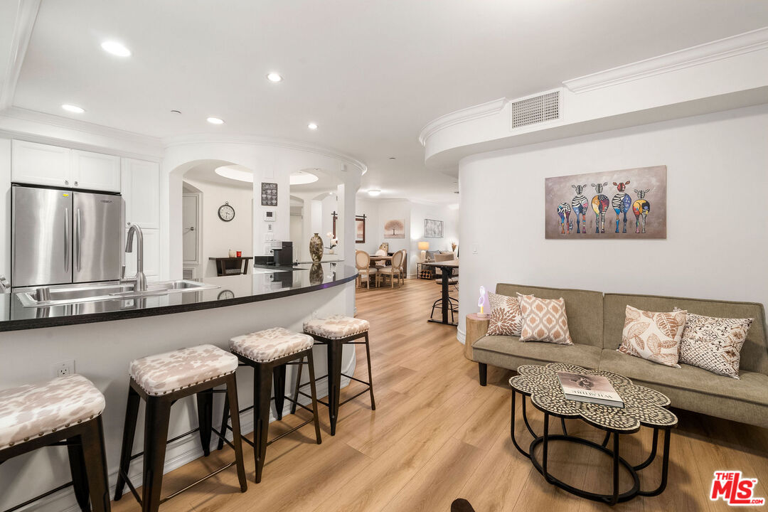 Welcome to a 1,552 sqft stunning unit in a premier courtyard building located on the sought-after Clark Drive. You are moments away from some of the city's finest boutiques, eateries and coffee shops on Melrose Ave and Robertson Boulevard. Recently renovated, this unit features a split bedroom floor plan boasting 2 large-sized bedrooms with ensuite bathrooms and an additional powder room for guests, providing privacy for all. A circular entryway welcomes you into the living area and kitchen, creating a dramatic introduction to this wonderful home. The large dining room is perfect for entertaining, while the open kitchen offers a breakfast bar, making it an ideal spot for casual dining or socializing. The spacious den, anchored by a cozy gas fireplace, offers a warm and inviting atmosphere perfect for relaxing or to work from work. This unit also offers a private balcony, convenience of in-unit laundry and two secured garage spaces.The condo combines style and sophistication in a way that is rarely available in the market and is located in one of West Hollywood's best location. Built in 2005 and updated in 2021, this residence encapsulates modern living at its finest. Welcome to your sanctuary in the city.Interested in this Listing?