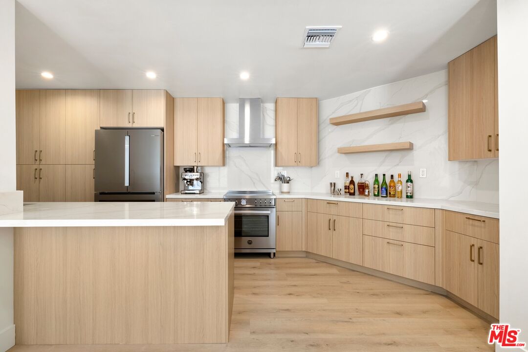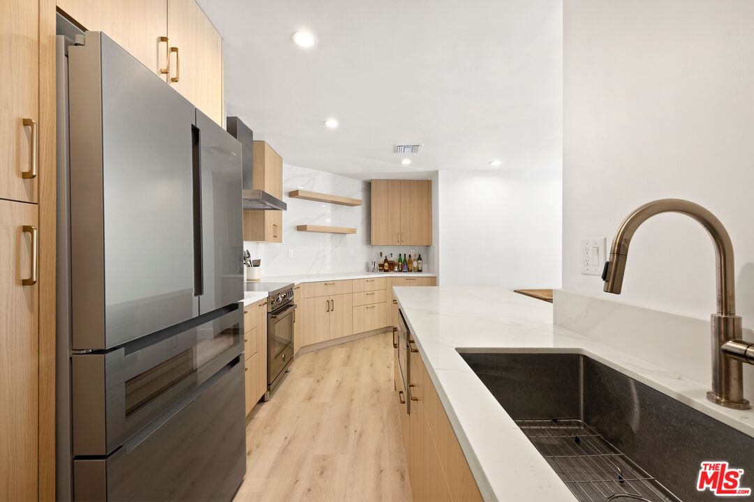 Exceptional West Hollywood Opportunity! Located on iconic N. Doheny Dr. in the heart of the Norma Triangle, Doheny Terrace offers a rare chance to live just moments from Beverly Hills and steps from both Sunset and Santa Monica Blvd. This meticulously renovated and spacious corner unit is tucked away on the quiet side of the building - no street exposure, no noise - offering a serene retreat with incredible natural light and effortless indoor-outdoor flow. Enjoy the best location within the building: no common walls and a large private patio that seamlessly blends into the expansive community sundeck, creating the perfect setting for both private relaxation and social gatherings. The open layout features scratch-resistant, pet-friendly engineered hardwood flooring, recessed lighting, and expansive wall space ideal for showcasing art. The designer kitchen is a true showstopper, featuring Calacatta Aurora quartz countertops, full-height slab backsplash, floating shelves, and custom cabinetry reconfigured to maximize space and storage. Top-of-the-line appliances include a BOSCH French Door Refrigerator with FlexBar, Miele dishwasher, and built-in Bertazzoni microwave and oven. The spa-inspired bathroom boasts a walk-in shower with stone flooring, Delta rain shower/handheld combo, a backlit LED vanity mirror, and a custom walnut-tone vanity that echoes the natural textures throughout for a clean, modern, and tranquil feel. The oversized bedroom is truly unparalleled, with direct patio access, a generous walk-in closet, and no shared walls for added privacy and comfort. Turn-key, stylish, and newly renovated all city inspected - this is a move-in-ready GEM in a highly desirable WeHo location. Gated garage parking included. The secure building features ButterflyMX smart intercom system, security cameras, a formal lobby, pool, gym, sauna, and community sundeck. Just steps to top-tier dining, shopping, and nightlife including Soho House, The Pendry, The Edition Hotel, Sunset Plaza, and nearby parks. A rare offering in one of West Hollywood's most sought-after enclaves - Don't miss out on this exceptional home!Interested in this Listing?