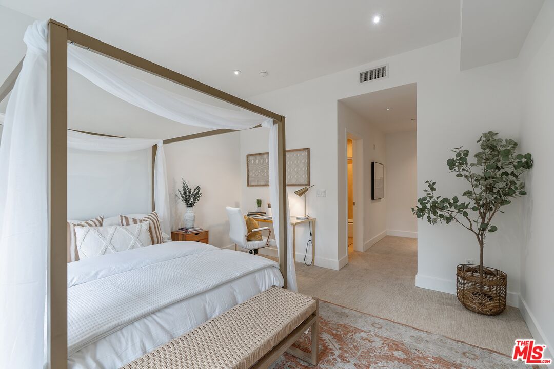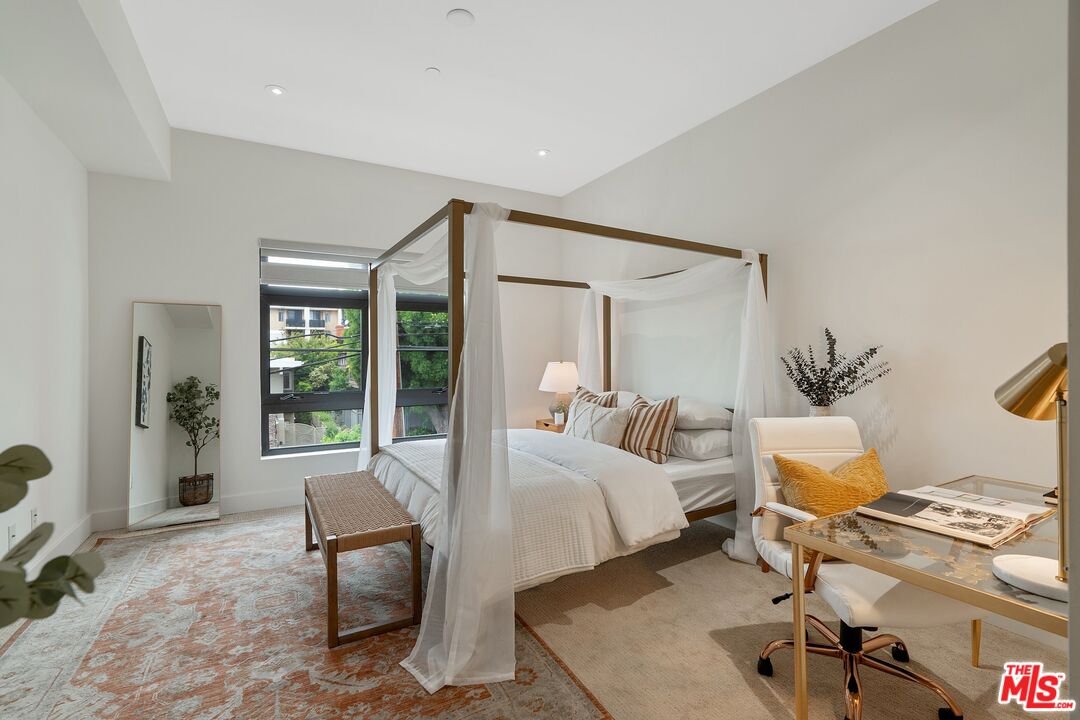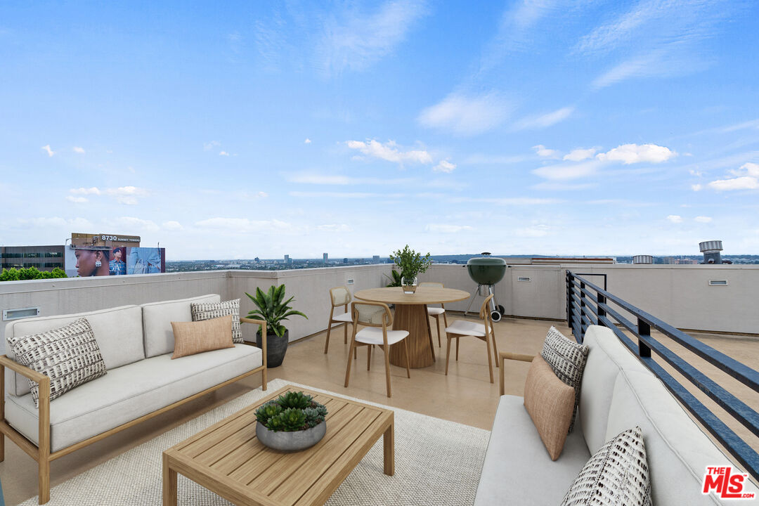 On a quiet street just north of Sunset Boulevard, this bright and spacious 2-bedroom, 2.5-bath condo blends comfort and privacy. Exit the elevator into your dedicated foyer. Set in a modern 15-unit building, the condo features an open-concept living and dining area that flows onto a balcony with city views. The kitchen is fully equipped with stainless steel appliances, including a gas range, double-door refrigerator, and dishwasher. The primary suite includes its own private balcony, a generous walk-in closet, and a large en-suite bathroom with dual sinks, a soaking tub, and a separate shower. The second bedroom, located across the unit for added privacy, also offers an en-suite bath perfect for guests or a home office. Additional highlights include in-unit laundry, side-by-side parking, extra storage in the secured garage, and access to a rooftop deck with panoramic city views.Interested in this Listing?