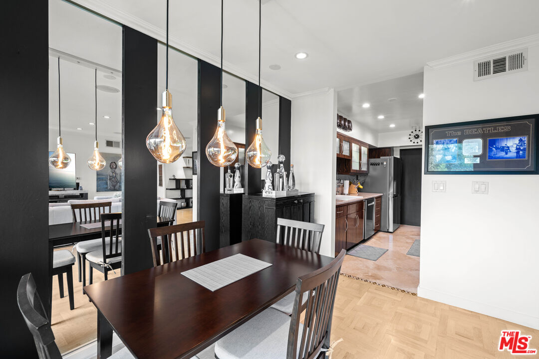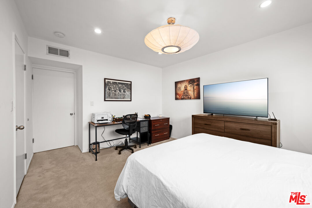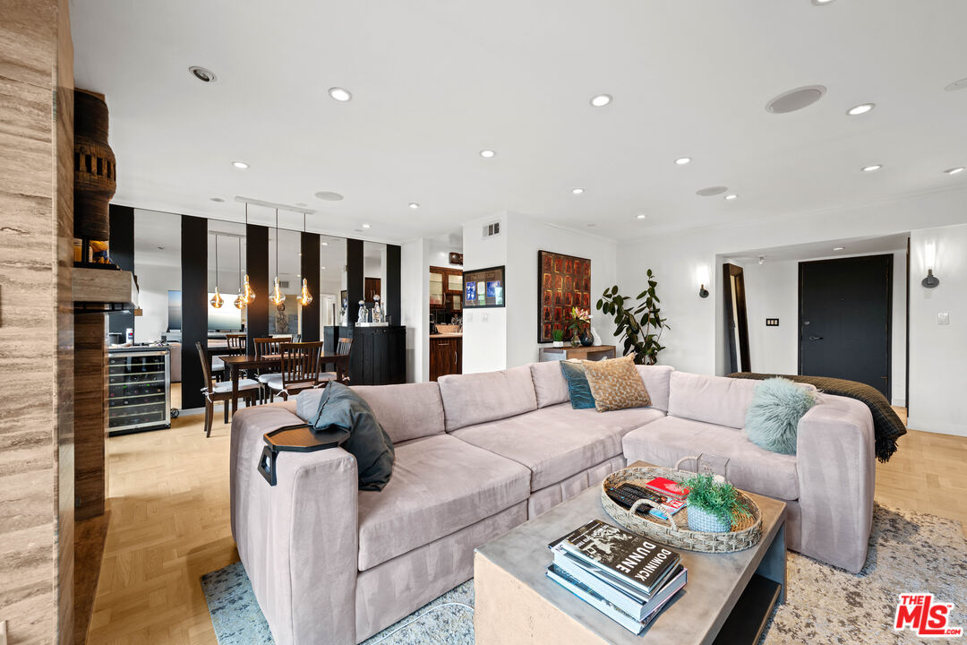 Elevate your lifestyle in this elegant top-floor condominium bathed in natural light and offering sweeping, panoramic views of West Hollywood, Beverly Hills, and the Hollywood Hills. This sophisticated residence boasts an expansive open-concept floor plan, where the spacious living room with a sleek fireplace and modern recessed lighting flows seamlessly to an oversized dining areaperfect for stylish entertaining. Floor-to-ceiling sliding glass doors open to a covered balcony, creating an effortless indoor-outdoor living experience. The well-appointed kitchen features new stainless steel appliances, generous cabinetry, and a charming walk-in pantry, offering both function and finesse. Retreat to the serene primary suite, complete with a luxurious en-suite bathroom featuring a beautifully upgraded double vanity and a custom walk-in closet with built-in organizers. A second renovated bathroom and a spacious guest room provide ample space and comfort with a walk-in closet. Additional highlights include central HVAC, in-unit laundry, and two dedicated parking spaces. Residents enjoy access to resort-style amenities, including a sparkling pool, sun deck, and stylish clubhouse. The unit also includes 2 tandem parking spots and a storage space in the garage. Ideally situated in the heart of West Hollywood, this chic condo is just steps from the city's most iconic dining, shopping, and nightlife. Moments from Cedars-Sinai, the Sunset Strip, and the Pacific Design Center, this is Westside living at its finest.Interested in this Listing?