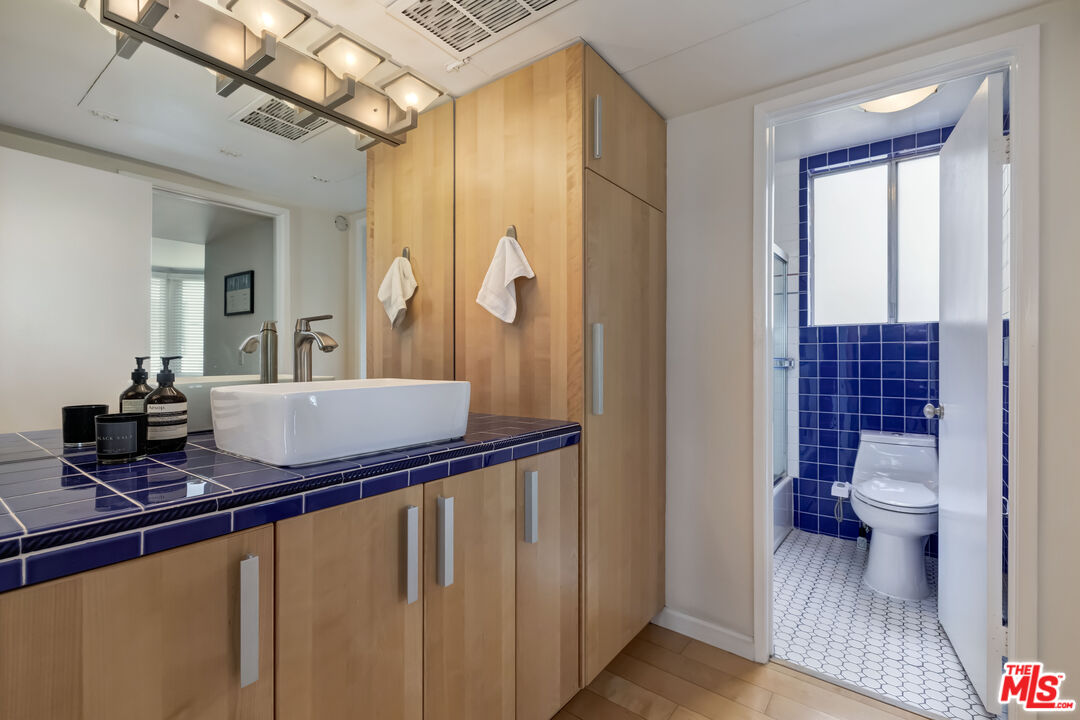 Beautiful unit in highly sought after Holloway Terrace. The guest room/office was a den conversion with two closets and lots of windows. Features include formal entry with powder room, balcony with tree top views, hardwood floors recessed lighting, crown moldings & triple planed windows in primary bedroom. The kitchen has blue tiles, apron front sink, wood cabinets, soft close drawers & stainless steel appliances. Other features include dining area w/wine frig, beverage storage & glassware cabinets, limited common walls, bath off primary bedroom w/vanity/sink/cabinets, tiled baths, central air/heat gas fireplace, views from all rooms, side by side parking, newly redone pool/ spa, nice gym, amazing roof deck, plus entertainment room. Nestled in a trendy neighborhood known for its lively atmosphere, you'll find an array of restaurants, shops, &ent entertainment options just minutes away making this condo an ideal choice for anyone looking to immerse themselves in the dynamic culture of West Hollywood. Motivated seller!Interested in this Listing?
