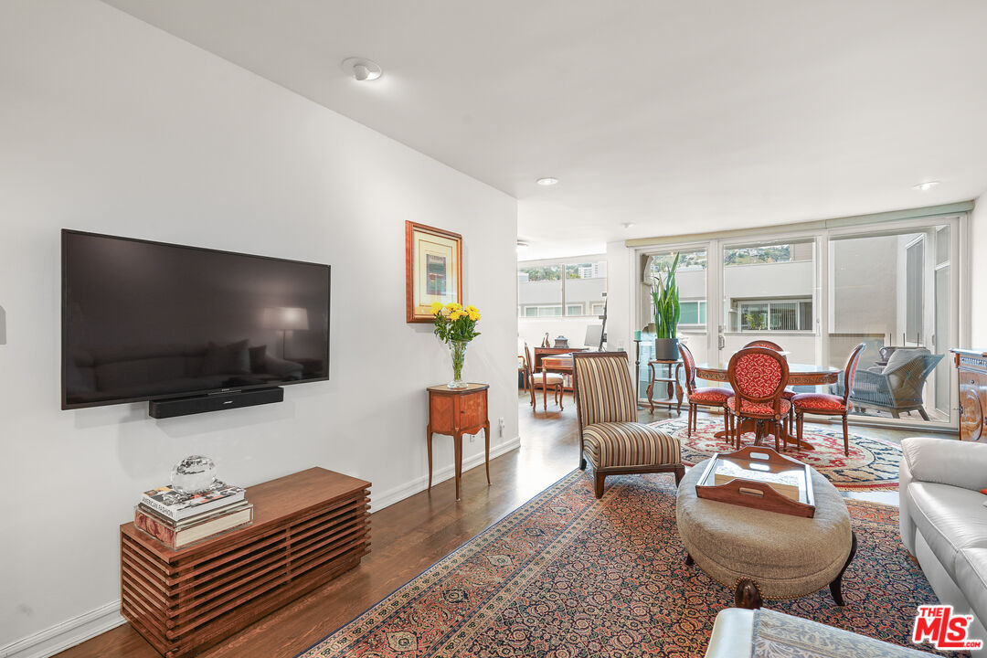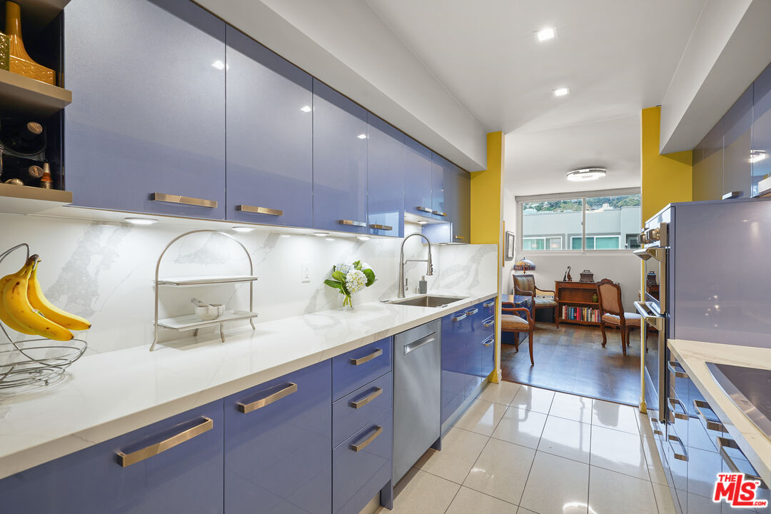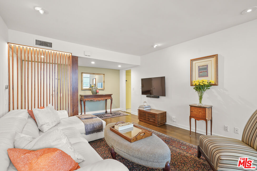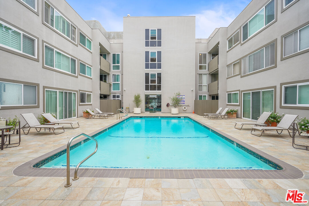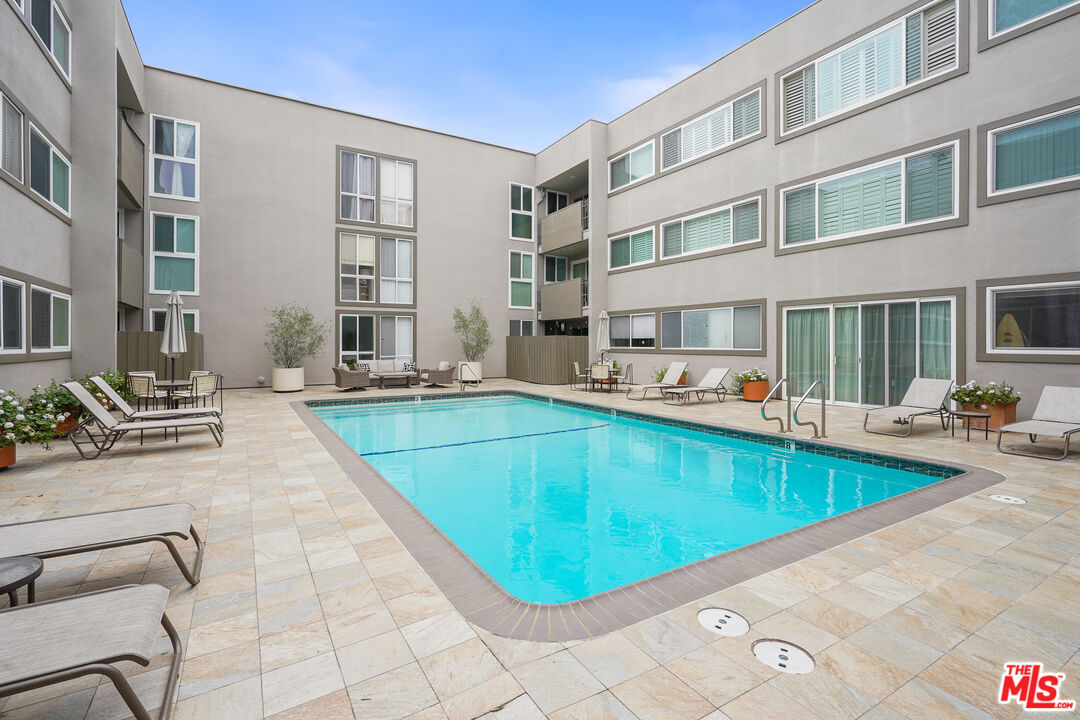 JUST REDUCED! SELLER IS MOTIVATED. Rarely available 3rd floor unit with an interior corner balcony located in the desirable Kingswood North complex on prime N. Kings Road. Pristine 1 Bedroom + 1.5 Bath condominium thoughtfully remodeled with stylish upgrades throughout. Upon entry, a custom-built partition creates a striking divider between the entryway and the spacious living room, featuring French oak hardwood floors, a smooth ceiling, recessed lights, and freshly painted walls. The open living & dining areas seamlessly flow toward a floor-to-ceiling glass slider, leading to the balcony with a lovely crestline view of the Hollywood Hills and an expansive sky backdrop. The traditional dining area (currently being used as a home office) opens effortlessly into the dynamic kitchen equipped with Snaidero cabinets, polished stone countertops, stainless steel appliances and sleek terrazzo tile flooring. A hallway with multiple closets leads to a handsome guest bathroom, complete with floating vanity and designer finishes. The sizeable primary suite includes a spacious sleeping & sitting area, a walk-in closet, plantation shutters, and a glass slider offering direct access to the balcony. The stunningly renovated bathroom features exceptional stone & tile materials, anchored by a custom vanity with a long countertop, double sinks, flush mounted medicine chests, and modern lighting. The bathroom also boasts both a bathtub and a separate stall shower with a glass enclosure. For added convenience, the unit includes a private laundry area with a Miele washer & dryer in a custom-designed closet adjacent to the kitchen. The building offers top-tier amenities including controlled access entry, a chic lobby & mail center, and a large swimming pool with a deck & lounging areas located in the central courtyard. The unit comes with one parking space in the community garage, equipped with wiring for an electric vehicle. Ideally situated in a prime WeHo location, the unit is just moments away from Santa Monica Blvd. and trendy Melrose Avenue, offering easy access to nearby conveniences including Gelson's Market, multiple gyms, and a variety of bars and restaurants. This exceptional home is absolutely move-in ready and awaiting its next lucky homeowner!Interested in this Listing?
