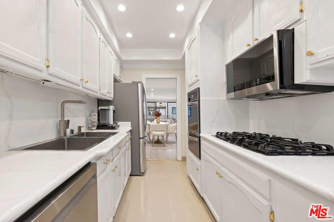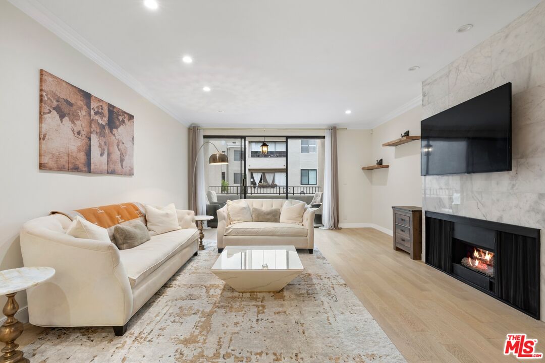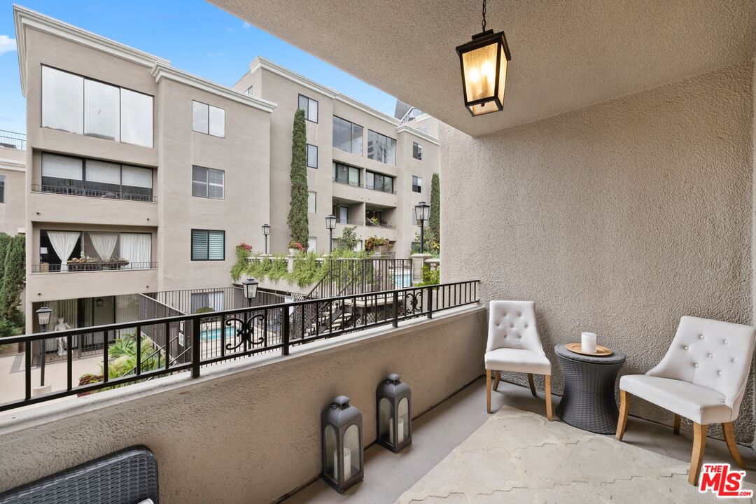 There are places in this city that don't announce themselves. Hidden behind gates and jacaranda trees, softened by the hush of a courtyard, #414 is one of them. A quietly luxurious 2BR/2BA retreat just a block south of the Sunset Strip. This remodeled condo offers 1,570 sq. ft. of open plan living, anchored by a step-down living room with recessed lighting and glass doors that open to a private balcony overlooking the serene courtyard. There's light here. Stillness, too. A second outdoor space, a gated front patio, adds rare charm and privacy. The kitchen is sleek and efficient with custom cabinetry, stone countertops, and new stainless appliances. A nearby wet bar with built-ins invites casual entertaining. The expansive primary suite includes a walk-in closet and a spa-like bath with soaking tub, step-in shower, dual sinks, custom lighting, and a dedicated vanity. The second bedroom, set apart down the hall, sits next to a full bath, ideal for guests, work, or both. Hardwood floors, refined fixtures, curated lighting, and a full-size washer/dryer elevate daily living. Includes 2 parking spaces in a secure garage, a separate storage unit, and exceptional amenities: Pool, indoor/outdoor spas, gym, saunas, library, and clubhouse. HOA: $872.83/month, includes water, sewer, trash, maintenance, and earthquake insurance.Interested in this Listing?
