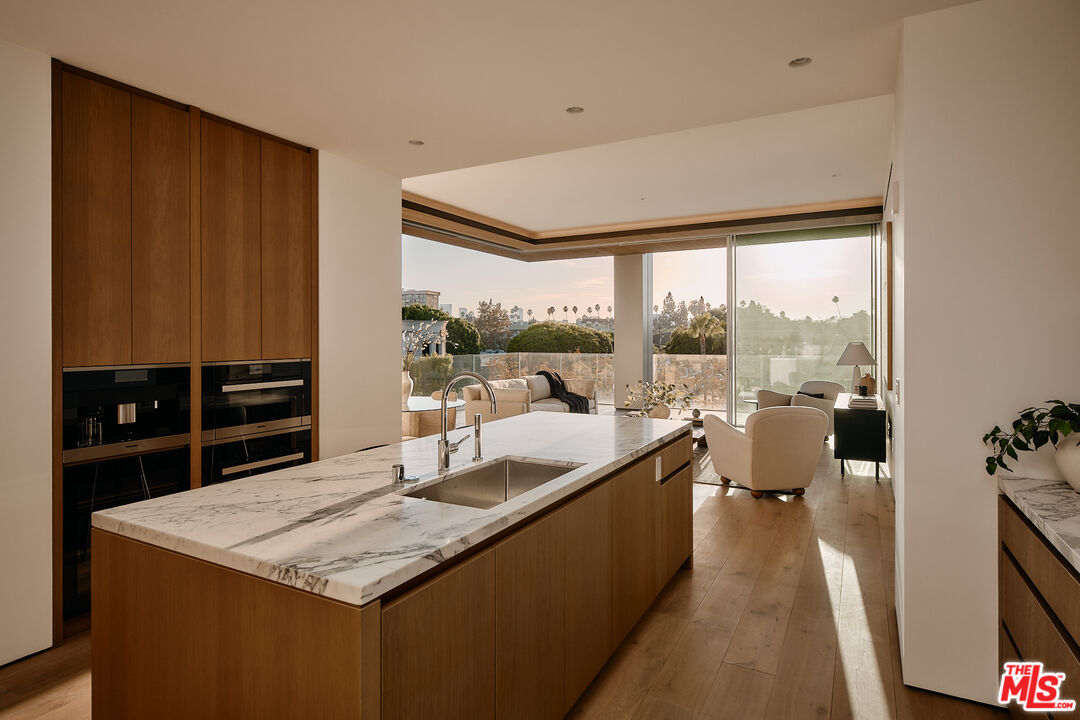 Residence 5C at 8899 Beverly is a meticulously crafted two bedroom, 2.5-bathroom home offering 2,004 square feet of exquisite living space, situated on the sunny southwest corner of one of Los Angeles' most iconic buildings. Designed with livability and sophistication in mind, the thoughtful floor plan provides ideal privacy, with each bedroom suite occupying opposite corners. A separate laundry room adds convenience and functionality to the layout.The primary suite offers two spacious walk-in closets and access to a private terrace. The en-suite bathroom boasts Italian travertine stone flooring, walls, and countertops, with chrome Dornbracht fixtures and an Agape Spoon XL soaking tub positioned beneath floor-to-ceiling windows. Ceilings soar up to 11', while Swiss-made Vitrocsa operable glass window walls create a seamless connection between the indoor living space and the wraparound terrace. The custom chef's kitchen features white oak cabinetry, Italian Calacatta gold marble, and top-of-the-line appliances by Gaggenau, Sub-Zero, and Miele, ideal for both casual meals and entertaining.Residents enjoy a serene, lushly landscaped pool area surrounded by private gardens, offering an oasis of calm in the heart of the city. The outdoor kitchen, dining areas, and cozy fireplace lounges nestled within the garden spaces are perfect for relaxation and social gatherings. Situated in the vibrant heart of West Hollywood's Design District, this residence is just moments from the city's finest dining, shopping, and cultural destinations. Whether exploring the neighborhood or retreating to the peaceful sanctuary of your home. The building's 24 hour valet and concierge services reflect the highest level of residential care. Designed by Olson Kundig as a "love letter to Los Angeles," 8899 Beverly is recognized as the finest residential building in the city, redefining modern luxury with a masterful blend of artistry, innovation, and timeless design.Interested in this Listing?