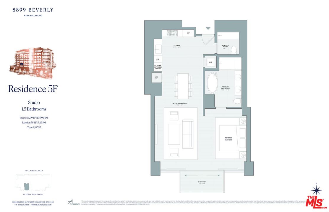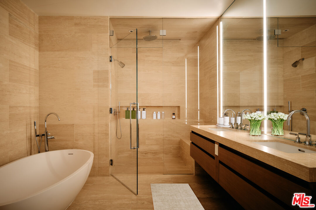 Experience the ultimate lock-and-leave luxury at Residence 5F, a studio pied-a-terre at 8899 Beverly. Designed by Olson Kundig as a "Love Letter to Los Angeles," this LEED-certified haven offers a sunny south-facing layout, and a floor-to-ceiling window wall. Sliding doors open to a terrace for seamless indoor-outdoor living. Perfect for jet-setters, the studio includes a spa-like primary bath with Italian travertine and soaking tub, plus a guest bath, built-in wardrobe, and in-unit laundry. Premium Sub-Zero, Miele, and Gaggenau appliances complete the sleek kitchen. Enjoy round-the-clock concierge, valet, a state-of-the-art fitness center, and a lush quarter-acre pool and spa oasis. Stroll to world-class dining, shopping, and the new Stella Restaurant located in the building. If you're looking for a no-fuss, high-style L.A. home base, this is it. Contact us for a private viewing today. Note: photos are virtually stagedInterested in this Listing?