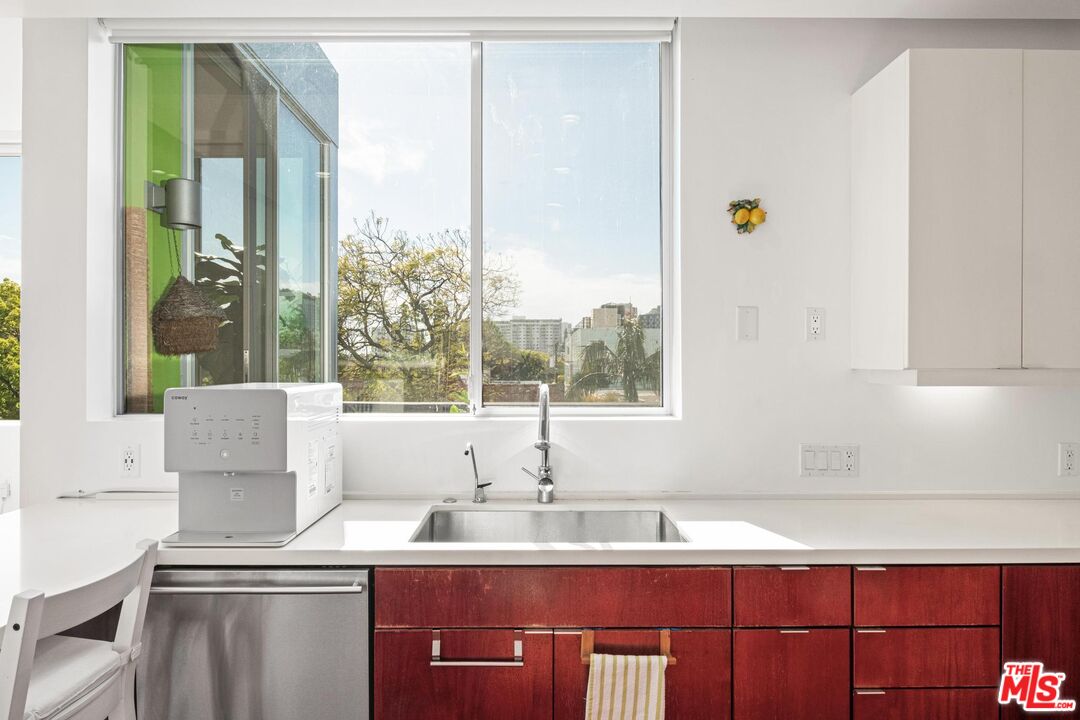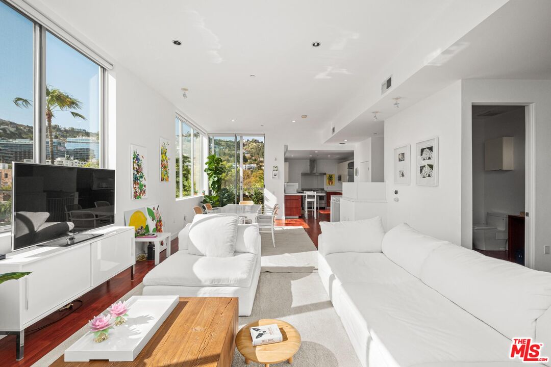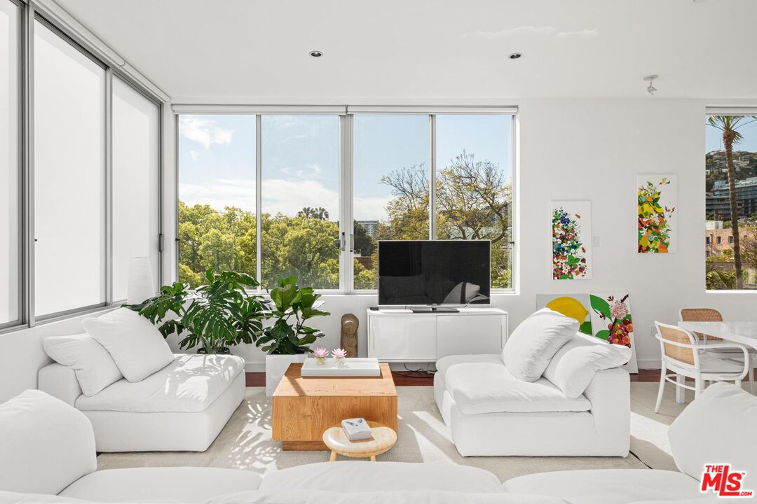 Modern Living with Iconic Views! Set in the heart of West Hollywood, this sleek, sunlit two-story penthouse offers effortless style and panoramic views of the Hollywood Hills. Designed for privacy and peace, the living room and kitchen share no common walls, creating a truly tranquil living experience. The open-concept layout features high ceilings and expansive west-facing windows, flooding the space with natural light. A private patio separated by a Fleetwood sliding door extends the living area outdoors, ideal for morning coffee or evening wind-downs and includes a wood rectangular garden planter with a dedicated watering hose, perfect for urban gardening enthusiasts. The streamlined kitchen is equipped with stainless steel appliances, quartz countertops, a chef's oven, and a walk-in pantry, making it as functional as it is stylish perfect for everyday meals or casual entertaining. Downstairs, you'll find three spacious bedrooms, each with its own walk-in closet, offering generous storage and flexibility for use as guest rooms, a home office, gym, or creative space. With 1,780 square feet, there's room to live your way. Additional features include a laundry closet, two tandem subterranean garage parking spaces, a small individual storage space on the ground floor, and secured building access with gated pedestrian entry. Centered in West Hollywood's top dining, shopping, and nightlife, this home is the perfect blend of modern design, thoughtful details, and unbeatable location. With its clean lines, iconic views, and versatile layout this is LA living, simplified.Interested in this Listing?