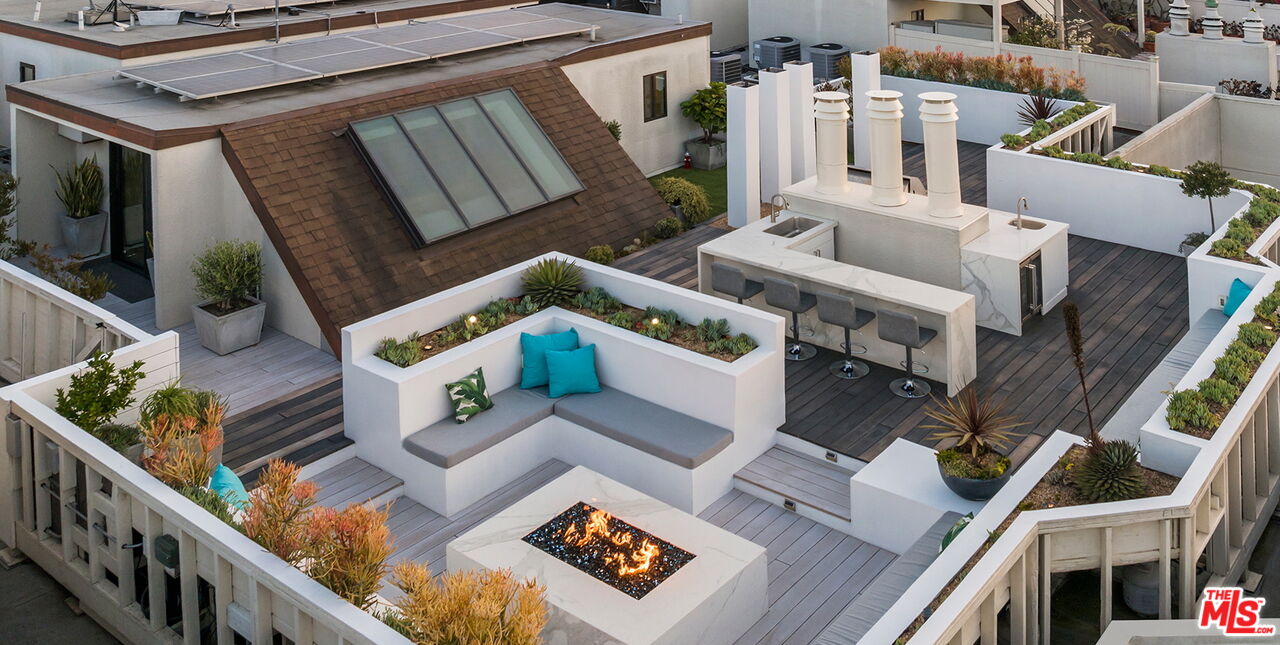 This expansive and luxurious 4 bedroom, 5 bath, 2,475 sq. ft. PENTHOUSE unit with 1,310 sq ft PRIVATE ROOFTOP DECK has been meticulously remodeled with the highest quality finishes. Located in prime, central West Hollywood, close to Melrose Place and numerous high end restaurants and boutique shopping. This unit is the largest floor plan in the building and the private rooftop lounge enjoys sweeping, unobstructed views of the Hollywood Hills and includes a sunken fire pit with abundant seating, outdoor kitchen with barbecue and bar seating, wine fridge, pet area with turf, space for a dining table, built-in planters with drought tolerant plants, uplighting and a drip line. The interior space features Fleetwood double-paned windows and sliding doors plus a vaulted ceiling with large skylight which fills the unit with light throughout the day. High-end Chef's kitchen with eat-in bar, Bosch and Thermador appliances, Heath Ceramics backsplash, Caesarstone countertops and ergonomic cork flooring. The primary bedroom suite has custom walnut closet with concealed laundry leading to gorgeously tiled primary bath featuring Ann Sacks tilework, soaking tub, shower and dual vanity. Additional fixtures include Grohe faucets, George Nelson lighting, 50+ dimmable recessed lighting. Upper bedroom loft features spectacular Hollywood Hills views. The building has wide and updated air conditioned hallways, large hot tub, gym, and 2 side-by-side parking spaces for this unit plus guest parking.Interested in this Listing?