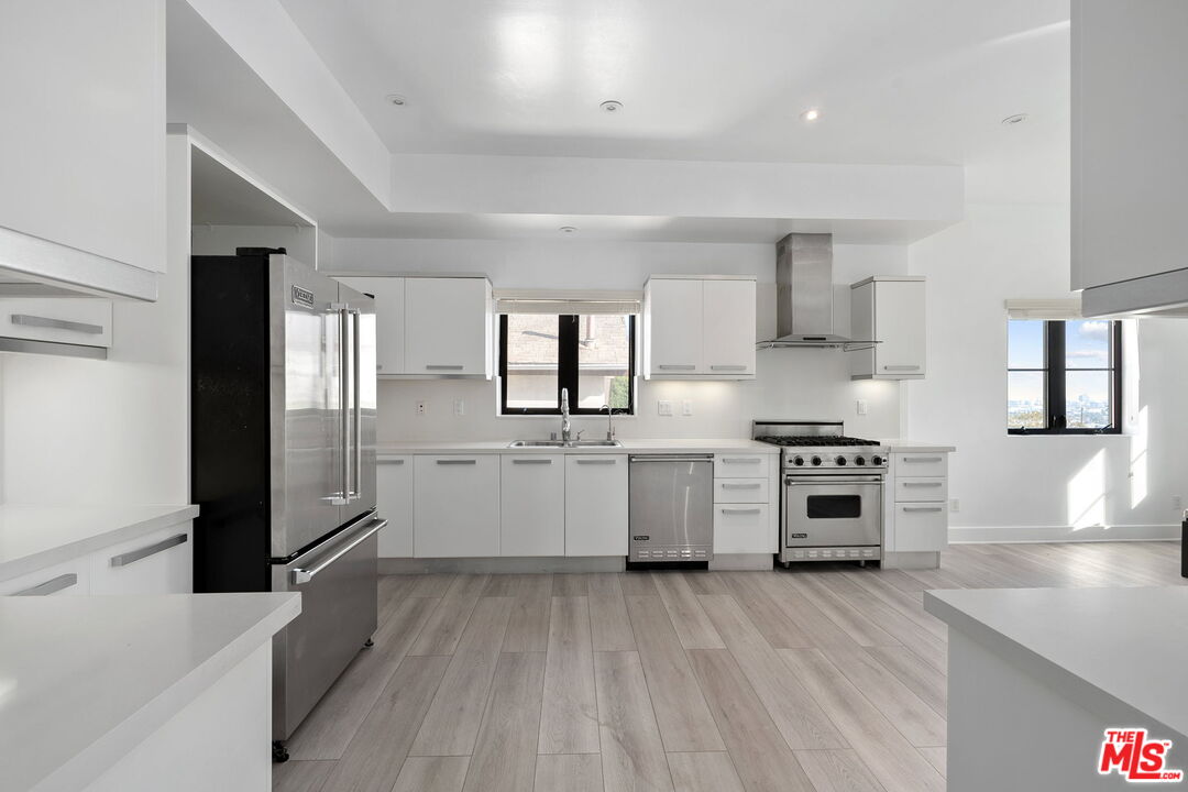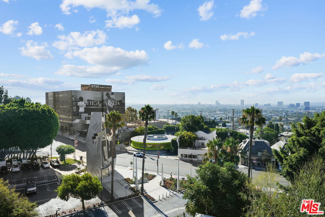 Perched above the illustrious Sunset Strip, this sophisticated corner-unit penthouse boasts an expansive private rooftop deck offering panoramic 360 degree views in one of Los Angeles' most coveted neighborhoods. Ideal for entertaining or serene everyday living, this exceptional residence features 2 spacious bedrooms plus an additional office/den, and 3 bathrooms. Upon entry, a private vestibule leads you to the light-filled living room, where soaring ceilings, a sleek gas fireplace, and a private balcony create a welcoming atmosphere. The gourmet chef's kitchen is outfitted with top-of-the-line Viking appliances, imported Italian cabinetry, and space for an eat-in breakfast area. Every inch of this home is designed with refined elegance, including porcelain wood-look tile floors, and a newly remodeled primary bathroom featuring an oversized walk-in shower and a separate soaking tub for ultimate relaxation. The expansive primary suite boasts sweeping views from Downtown to Century City, as well as a large walk-in closet. An additional guest bedroom offers its own ensuite bathroom, beautifully appointed with timeless Travertine stone. Other notable features include a convenient powder room, in-unit laundry, direct elevator access to the unit, and two side-by-side parking spaces in a secure, gated garage. Just moments from West Hollywood's best restaurants, shopping, and entertainment, this penthouse presents an extraordinary opportunity to own a contemporary, luxurious residence in an unbeatable location.Interested in this Listing?
