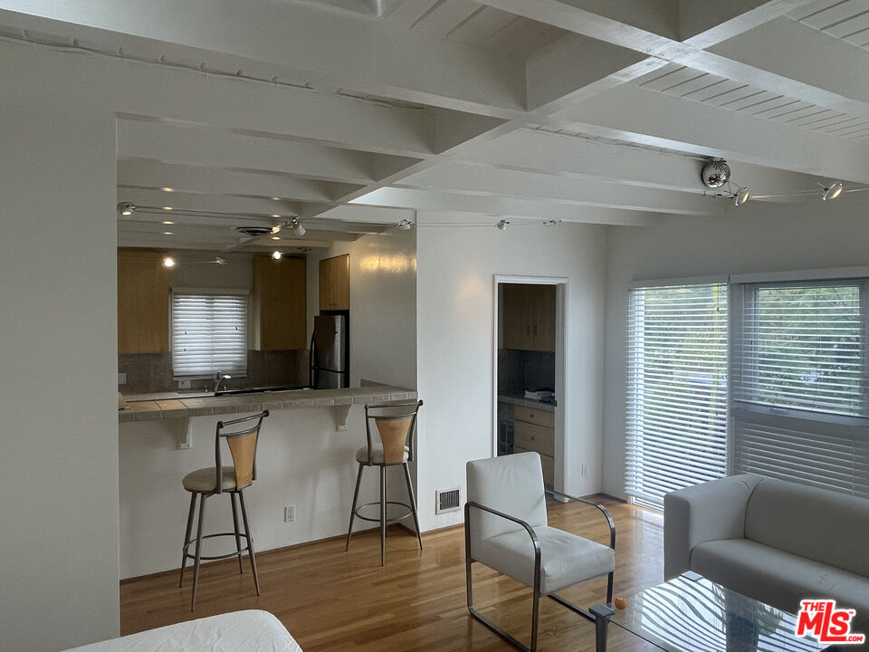 6 month minimum stay FURNISHED, Utilities are $100 extra per month ..Liight and bright remodeled 2nd floor, 1953 post & beam studio south facing w/skylights. Has nice view hardwood floors, lots of storage space. In arguably the best location in WeHo 1 minute walk to blue whale Pacific design center...two blocks from Sunset Strip & Beverly Hills, unit is self contained with no adjoining walls. No one living above or below. Garage is used for storage by landlord Quiet Central A/C, STOVE, REFRIG & DISHWASHER MICROWAVE INCLUDED. Laundry shared with only one other. Perfect walking neighborhood near San Vicente and Melrose available immediately. Off street parking available for $100/moInterested in this Listing?