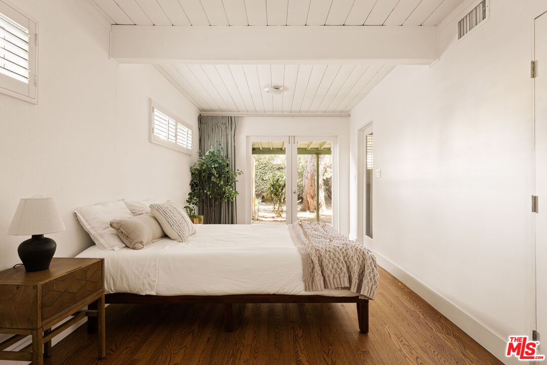 Fully Furnished SHORT TERM RENTAL available for up to 3 months at a time. Set behind a secure gate and hedges affording the utmost privacy sits this enchanting Spanish bungalow style home on an oversized fenced in yard with mature landscaping. Move in ready and freshly painted white, this home exudes character with charming details such as: stained glass, arched doorways, French doors, built ins shelves, breakfast nook and more. Greeted through the quaint entryway step into the main living area with a spacious, bright and open floorpan with high ceilings, recessed lighting, and hardwood floors throughout. The Primary bedroom features glass doors that enter into the private backyard patio where you can read a book or enjoy your morning coffee, and an ensuite bathroom with tile flooring and a step in shower. The remodeled kitchen features panel ready appliances, stone countertops, minimalism design, a separate breakfast nook and in- closet stackable laundry off to the side in a discreet location. Parking is a breeze with a private gated driveway that can fit up to 3-4 cars plus a 1 car garage that could also be used for storage. Situated on a quiet street this home is in one of the most desirable locations in the city. Walking distance to highly rated restaurants and shopping that West Hollywood has to offer on the famous Santa Monica Blvd, Melrose Ave and surrounding areas.Interested in this Listing?