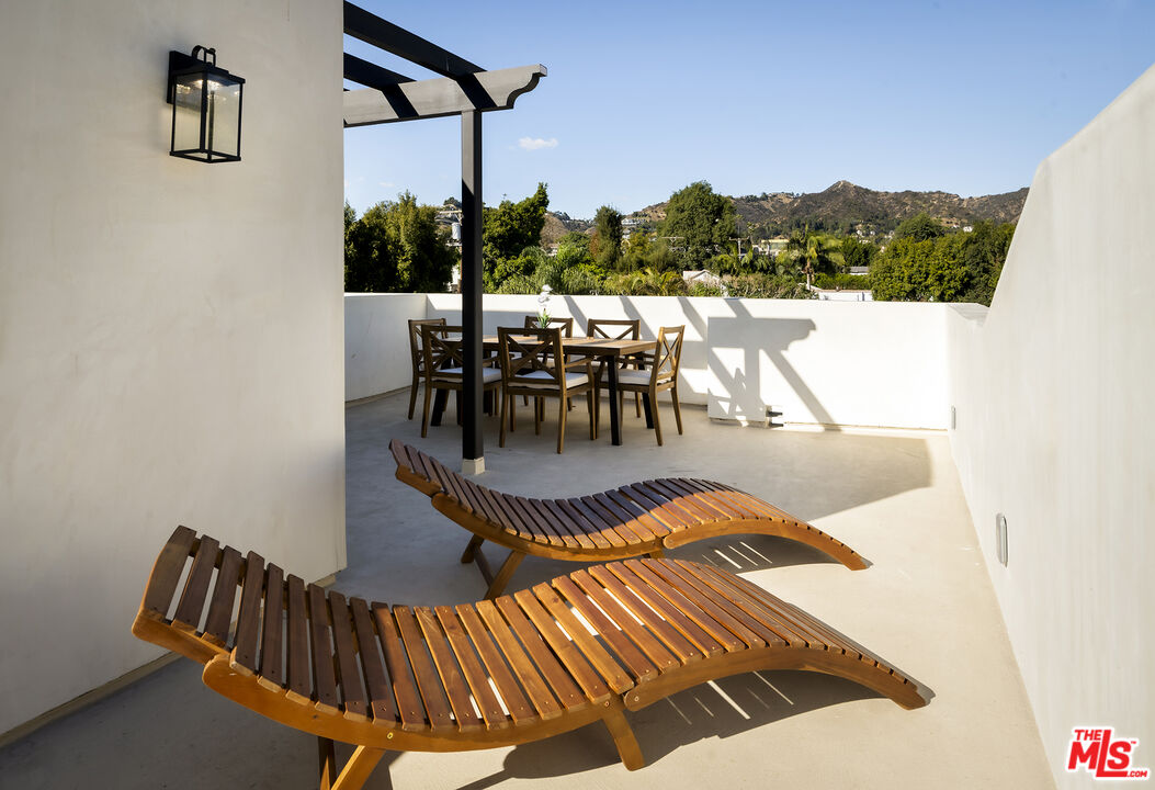 Exquisitely remodeled & furnished contemporary Montecito-style gated residence in the vibrant heart of West Hollywood. This homes offer a seamless blend of timeless elegance and modern luxury, creating the ultimate urban sanctuary, boasting expansive living and dining area, high ceilings, and abundant natural light, complemented by a modern kitchen outfitted with luxurious stone finishes, timeless tiles, and premium Italian cabinetry. The spacious en-suite primary bedroom feature a walk-in closet, while the bathrooms showcase custom fixtures and sophisticated design. The property includes new stainless-steel appliances, a Nest-controlled HVAC system, laundry area, and a private outdoor space. Also included is a four-car gated garage setup, with two covered and two uncovered parking spots, ensuring convenience and security. Step outside to discover a serene backyard ideal for outdoor dining, lounging, or soaking up the sun. An expansive rooftop deck crown the residence, providing breathtaking views of the hills, a perfect setting for entertaining or quiet relaxation. Nestled in one of Los Angeles' most desirable neighborhoods, this private, gated compound ensures a sense of security and seclusion while being steps away from world-class shopping, dining, and entertainment. With a sophisticated blend of Montecito charm and contemporary design, this property embodies the pinnacle of California living.Interested in this Listing?