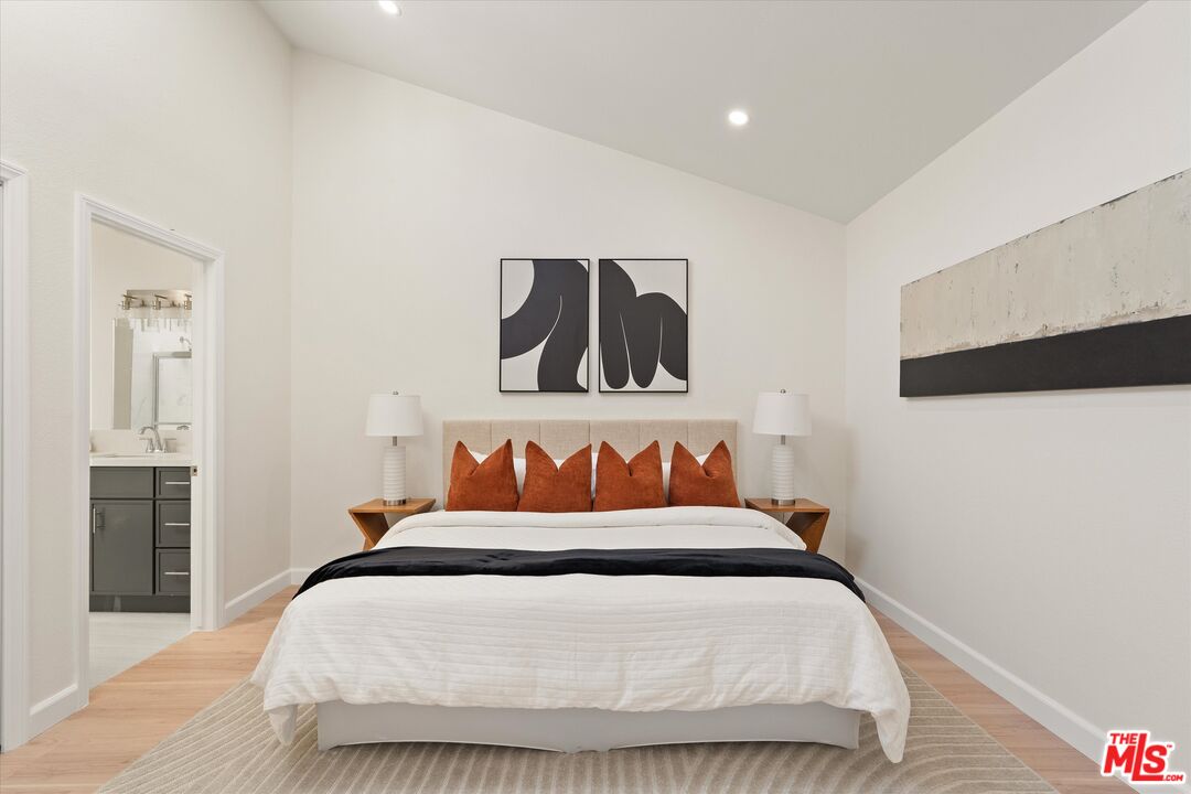 Tucked just steps from the best of West Hollywood, this freshly remodeled 2-bedroom, 2.5-bath, 1,236-square-foot thoughtfully designed condo has it all! Downstairs, the open floor plan welcomes you with new gleaming luxury vinyl floors and a seamless flow from the kitchen to the living and dining areas. The kitchen is equipped with sleek stone countertops, stainless steel appliances, and a center island that doubles as a breakfast bar perfect for casual mornings or entertaining. The living room features a cozy gas fireplace and opens to a private patio, ideal for evening cocktails or your morning coffee. A stylish powder room rounds out the first level. Upstairs, you'll find two spacious bedrooms, both with soaring vaulted ceilings and en-suite bathrooms, invoking that "single family" home feeling. The primary bedroom suite feels like a retreat with generous closet space and spa-like finishes. Additional perks include in-unit laundry, two assigned parking spaces, and access to a sparkling community pool. All of this in one of L.A.'s most walkable neighborhoods just minutes from top-tier dining, boutiques, and nightlife on the bustling Santa Monica Blvd. Whether you're looking for a vibrant city lifestyle or a quiet, modern home base, this condo home puts you right where you want to be. ***THE PROPERTY IS ALSO AVAILABLE FULLY FURNISHED AT $5,500 EACH MONTH.***Interested in this Listing?