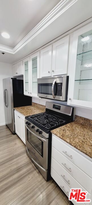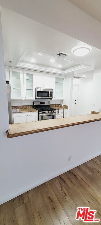 LUXURY PENTHOUSE LIVING 2 BED, 2 BATH SUITES LUXURY West Hollywood Penthouse 2 Bedroom + 2 BathStep into luxury living with this stunning 2-bedroom, 2-bathroom penthouse, nestled in the heart of West Hollywood. Offering nearly 1,400 square feet of beautifully designed space, this home provides an exceptional living experience.Property Highlights:Bright & Spacious Living Area: Upon entering, you'll be welcomed by a spacious living room with high ceilings, a charming fireplace, and a striking stained-glass window. Hardwood floors flow throughout the unit, while generous closet space and a central HVAC system provide both style and comfort.Gourmet Kitchen: The modern kitchen is a chef's dream, equipped with white quartz countertops, sleek white cabinetry, and high-end stainless steel appliancesincluding a microwave, dishwasher, stove, oven, and French-door refrigerator. A convenient breakfast bar extends into the dining area, offering a perfect spot for casual dining or entertaining.Private Bedrooms with En-Suite Bathrooms: Both bedrooms are generously sized and feature walk-in closets and private balconies. One bedroom includes a separate entrance for added privacy and convenience.Luxurious Bathrooms: The bathrooms are designed with elegance in mind, including one with a double vanity and a spacious walk-in shower, highlighted by a stylish gray-patterned stone accent wall.Convenience at Your Doorstep: An in-unit washer and dryer make laundry day hassle-free.Building Amenities:Secure, gated building with intercom access and surveillance cameras for added peace of mind.Gated parking for residents.Access to a community pool, BBQ area, and a large multi-purpose room ideal for meetings, events, or private gatherings.This beautifully appointed penthouse blends contemporary design with ultimate comfort, offering a perfect retreat in one of LA's most sought-after neighborhoods. Don't miss the chance to make this luxurious space your new home!Interested in this Listing?