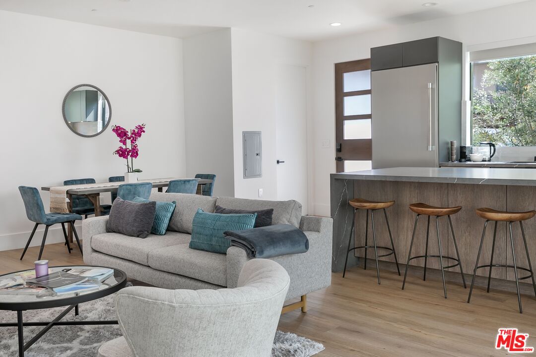 FULLY-FURNISHED, FULL-EQUIPPED. AVAILABLE FOR SHORT AND LONG STAYS brand-new construction in a central West Hollywood location! Walk through the front door to the living space. Relax on the couch and watch your favorite streaming service or local channel on the large flat-screen TV. Cook a meal in the large kitchen with stainless-steel Thermador appliances. Enjoy your food at the gorgeous kitchen island with bar stool seating for 4, or gather in the dining area with a dining table and seating for 6. The first bedroom is situated next to the living room on the first floor, making it easily accessible for anyone. Rest on the Queen bed and enjoy the spa-like attached bathroom with 2 sinks and a shower. Head up the stairs to find the Master suite with a King bed, Smart TV, spacious walk-in closet, and private balcony with lounge furniture. The attached Master bath offers 2 sinks and a shower. Both bedrooms provide room-darkening shades for the best comfort and sleep possible. Step outside to the private patio and enjoy a snack under the tress at the picnic table. The unit offers garage parking for 2 vehicles and laundry room with a washer and dryer. Recessed lighting and hardwood flooring found throughout the home.Interested in this Listing?