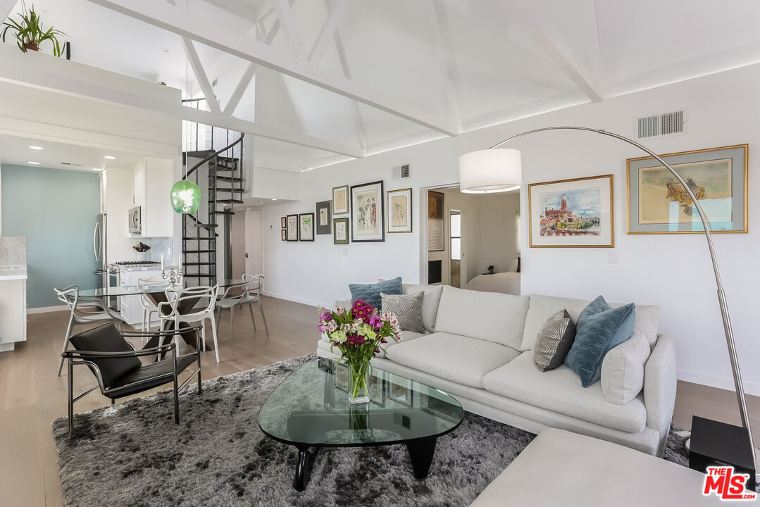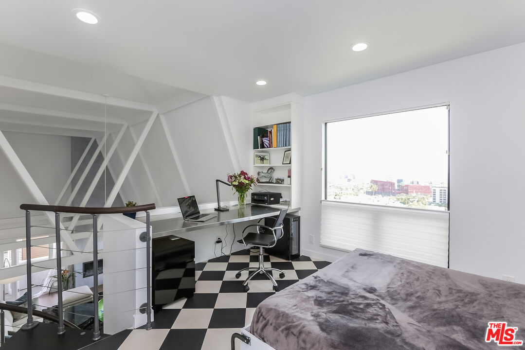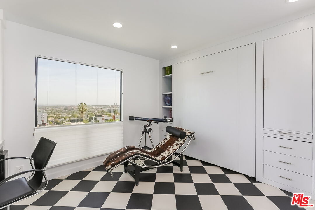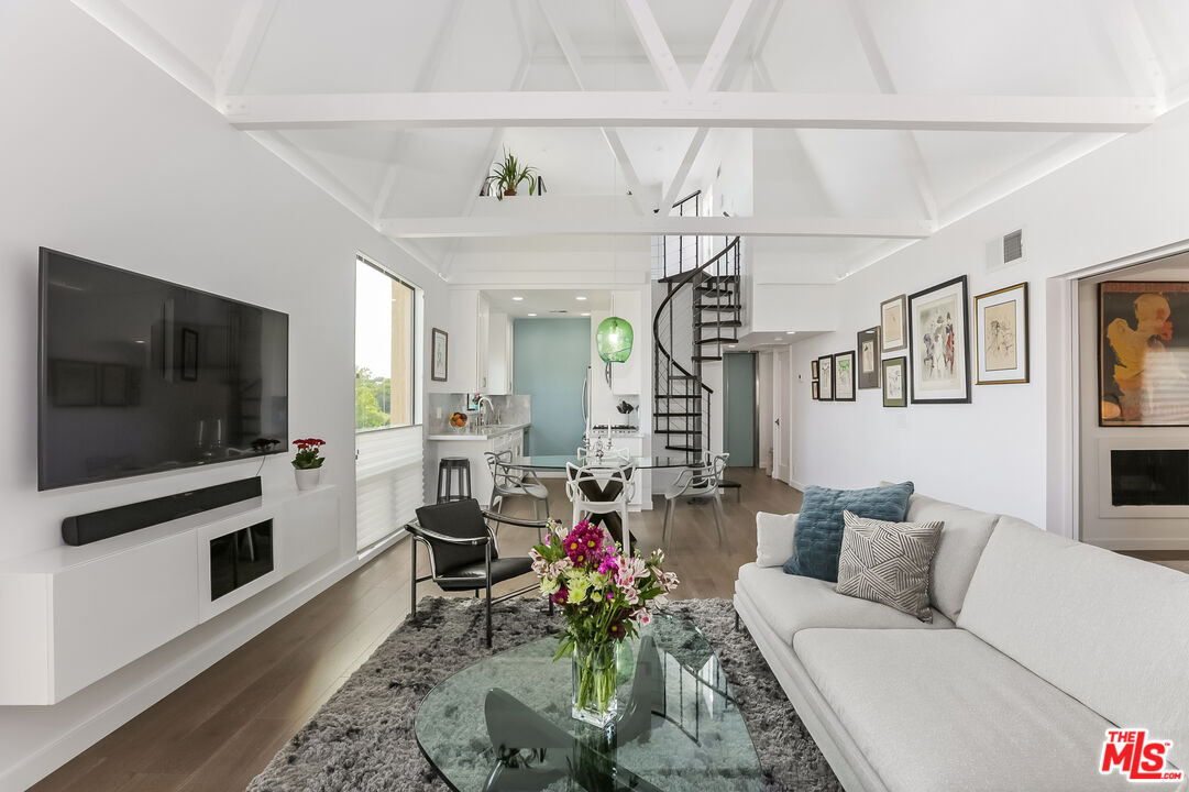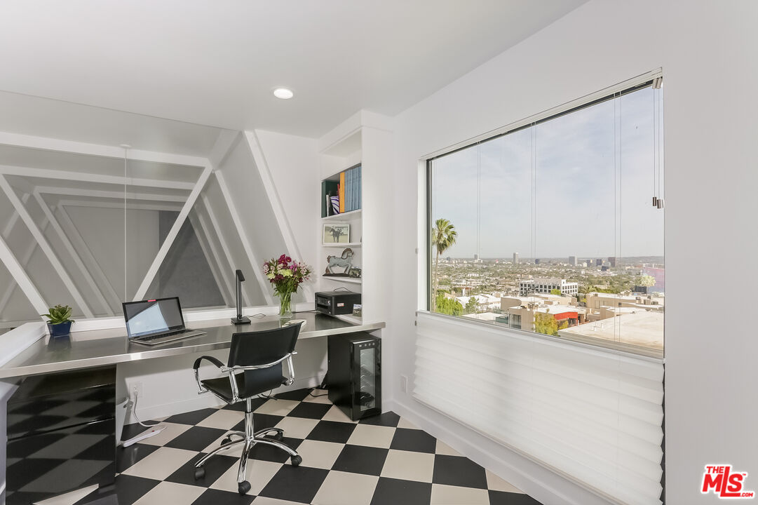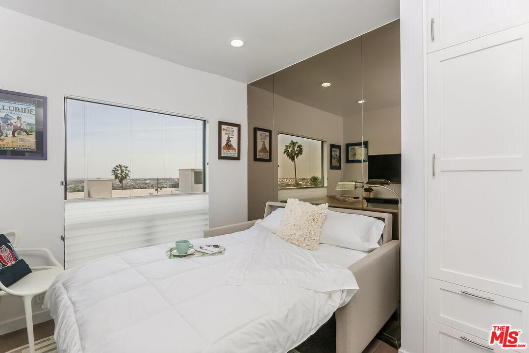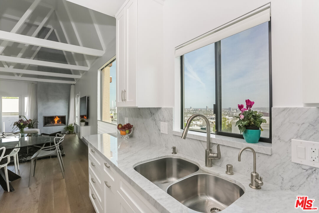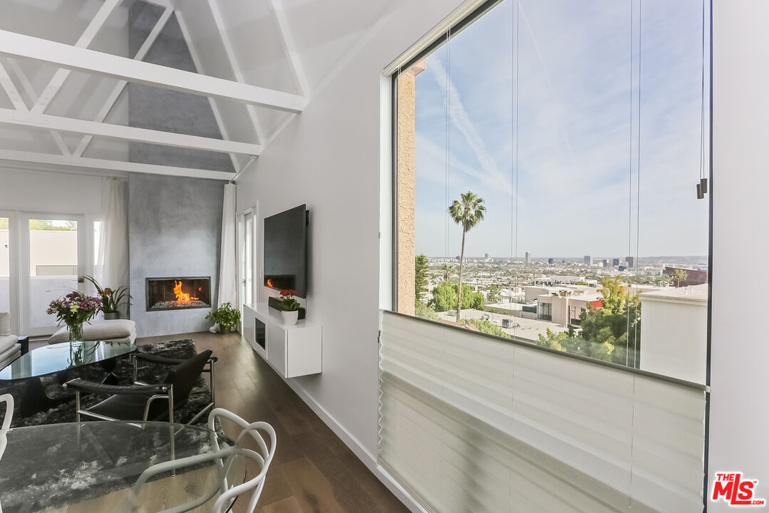 Views! Views! Views! Sunset Plaza Adjacent. Enter directly from elevator into this stunningly appointed, two-story penthouse with private rooftop garden and bonus office/sleeping loft. Two bedrooms plus loft with "Murphy Bed" sleeps six total. Main living area includes hardwood floors, working fireplace, south facing balcony (downtown-to-ocean views), kitchen with marble counters and stainless steel appliances. Primary suite includes decorative fireplace, en suite bath, double walk-in closets and barn door enclosure. Guest bedroom has pull-down sleeping sofa. Dramatic spiral staircase leads to office loft, overlooking main living area. Murphy bed on loft accommodates additional guests. From here, enter tranquil rooftop garden with Hollywood Hills and downtown views. The perfect city sanctuary -- just minutes from gyms, hotels, shops and restaurants. Available fully furnished only. Ideal for fire evacuees: Owner prefers a 6- or 7-month lease.