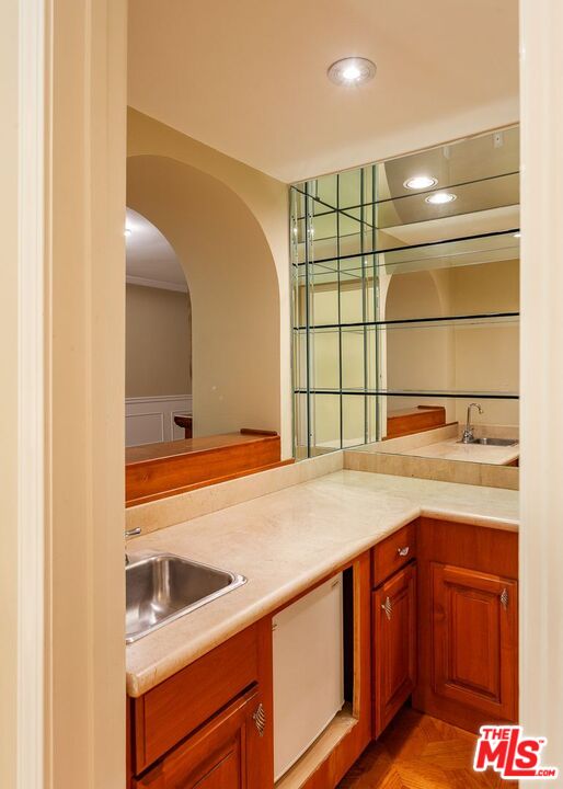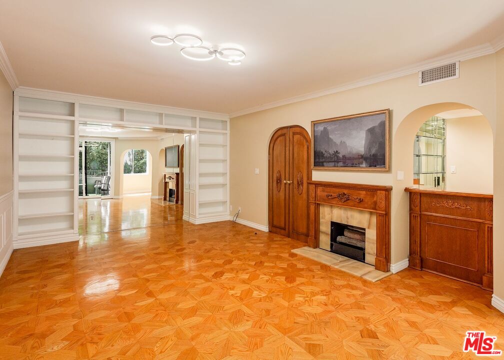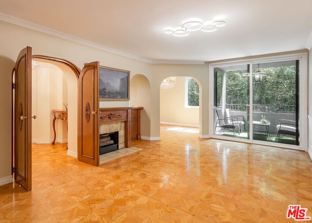Welcome to this luxurious and spacious 2BD/2BA home in one of the area's most desirable communities. From the formal entry with custom console and mirror to the smart lighting and rich wood floors, every detail is thoughtfully designed.Enjoy a center-hall layout with a large living room featuring a fireplace, built-in bar, and beverage fridge. The chef's kitchen boasts granite countertops, Samsung appliances, Kitchenaid dishwasher, and custom cabinetry, plus a cozy breakfast nook and formal dining area that opens to a private balcony.The primary suite offers a second fireplace, remodeled en-suite bath, and walk-in closet with built-ins. A spacious secondary bedroom, remodeled guest bath, in-unit laundry room, and only one shared wall enhance privacy and function. Unit includes 2-car tandem parking by the elevator. Community amenities: gated entry, 3-story waterfall, pool, spas, gym, library, billiards, and updated elevators. Easy garage access from both Fountain Ave and La Cienega Blvd.Live in luxury, comfort, and convenience all on one floor.Interested in this Listing?