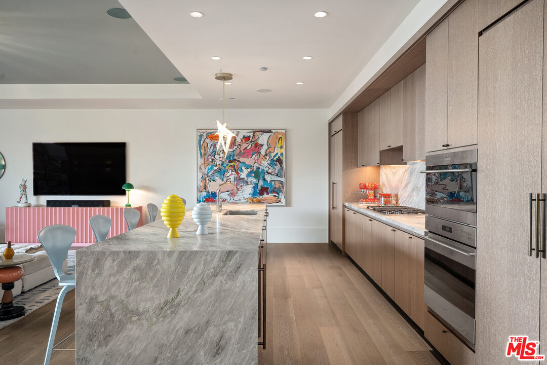 Immerse yourself in luxury at the Pendry Residences, a 24-hour full-service amenity building, located on the iconic Sunset Strip in West Hollywood. Residence 504 offers unparalleled privacy with breathtaking views that perfectly frame Downtown LA, to the iconic Sunset Tower Hotel and city skyline beyond. Sophisticated and stately, the home exudes a refined ambiance with wide-plank white oak flooring and floor-to-ceiling glass walls that bathe the space in natural light. The chef's kitchen is replete with top-of-the-line Subzero and Wolf appliances, custom white oak stained cabinetry, and Waterworks fixtures. The current owner has made significant upgrades to the residence including bookmatched Calacatta Bluette honed marble in the kitchen and entryway, custom millwork throughout, an upgraded walk-in closet in the primary suite, remodeled guest bathrooms with Calacatta Viola honed marble, Flos Skygarden recessed lights, high-end light fixtures, custom drapes/sheers, and smart home integration including 28 Definitive Technology in-ceiling speakers, Lutron lighting, Nest, and a mesh Wi-Fi system. Enjoy the convenience of direct access via a private elevator, and two parking spaces with valet parking. The Pendry Residences offers a range of unmatched residential amenities, including 24-hour concierge and security services, a rooftop pool and spa with jetliner city views, a state-of-the-art fitness center, resident lounge, a tranquil garden deck, and services of Pendry Hotel.Interested in this Listing?
