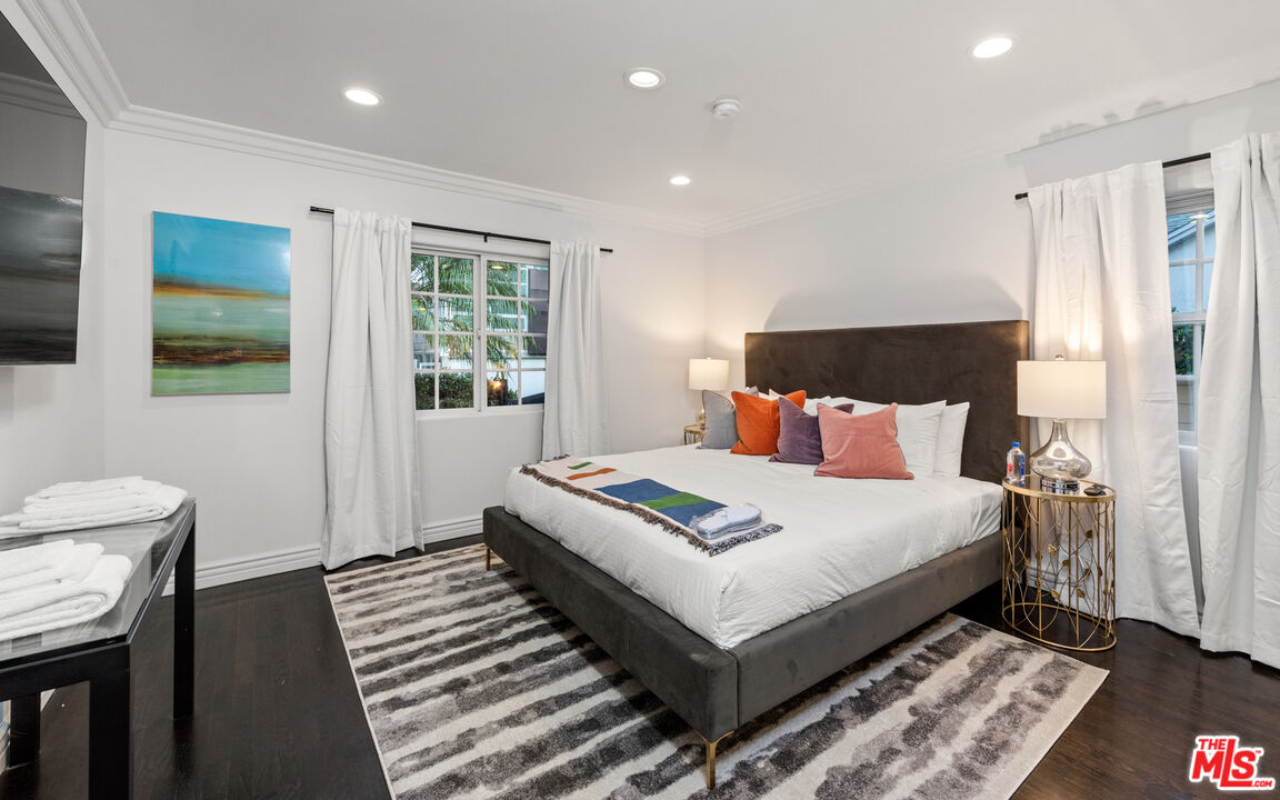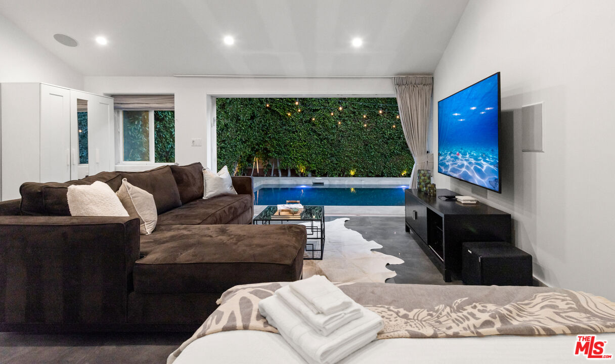 Move-in date March 21st. It is fully furnished and turnkey, making it ideal for short-, mid-, or long-term leases. Treat yourself to the refreshing charm of this gated urban oasis, ideally situated in the heart of West Hollywood. Impeccably decorated with pure white walls and dark wood floors and accents, you'll appreciate tasteful splashes of color throughout. The main floor living spaces include a gourmet kitchen, a formal dining room, and a grand living room with a fireplace and bar. A comfortable covered patio leads to a private sun deck featuring a glistening pool, spa, and a seating area with a fire pit. The spacious primary suite is designed for your comfort, boasting a fireplace, a walk-in closet, a jacuzzi bath, and a glass shower. Four additional guest rooms are available to accommodate your friends and family. This stunning Spanish contemporary home also includes a guest house, a gym, all-new smart TVs, and advanced security and camera systems. Located within walking distance of the Pacific Design Center, restaurants, boutiques, shops, and nightlife, this home puts the world at your fingertips.Interested in this Listing?
