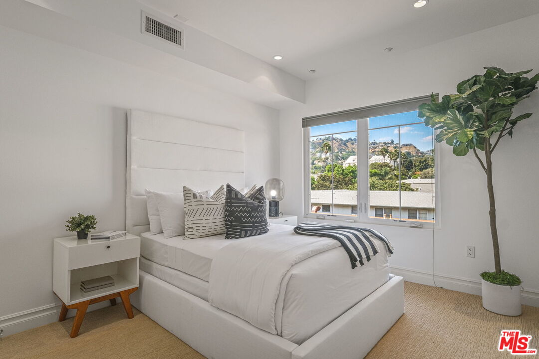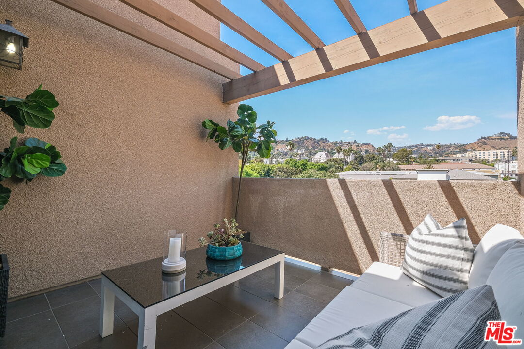 A sleek, light & bright Unfurnished Penthouse with sweeping City & Hollywood Hills views. Two large terraces off the living & primary that provide spacious lounging and dining spaces. Rare 3 car garage parking! The windowed kitchen has city views, stone counters and beautiful custom cabinets. Spa-like, over-sized Primary suite complete with a walk-in closet & luxurious en-suite bath with soaking tub & separate rainfall shower. In unit laundry room includes full sized washer & dryer, plus controlled access & more. Centrally located on a beautiful tree-lined block that's close to the best restaurants & shops of WeHo. This condo lives like a home! Guest Parking and EV chargers available in garage. And did we mention 3 car parking?Interested in this Listing?