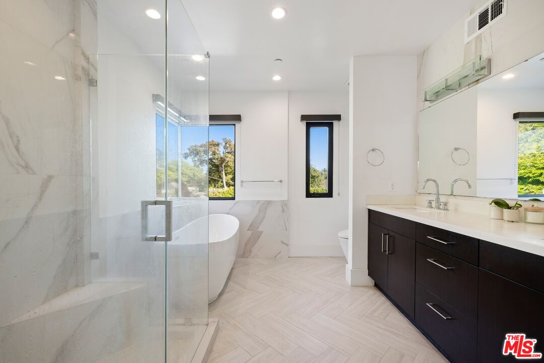 Beautiful Newer construction Contemporary in Prime Westwood neighborhood. Open light filled floor plan with grand 20 ft ceiling entryway and circular staircase, tasteful interior finishes throughout, beautiful and functional kitchen featuring Viking appliances and an oversized island and breakfast area. Featuring 5 bedrooms and 6 bathrooms. The Primary Bedroom has spa-like bathroom, an oversized closet, and private terrace. Family room and living room both feature modern fireplaces. Back yard features an in-ground pool and built-in BBQ as well. Some of the pictures are virtually staged and/or have some virtual staging added in.Interested in this Listing?
