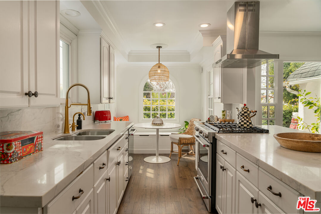 Timeless French Elegance Meets Contemporary Comfort. Located just blocks from Westfield Century City, this exquisite French modern masterpiece seamlessly blends classic European elegance with contemporary design, offering an unparalleled living experience. As you step inside, you're welcomed by a warm and inviting layout with modern updates. The living and dining areas flow effortlessly into an open-concept kitchen, creating the perfect space for everyday living and entertaining. With three bedrooms on the main floor, including the primary suite, and a fourth bedroom upstairs, the home offers exceptional flexibility. Two spacious family rooms - one up and one down - provide separate areas to relax, while a dedicated office space makes working from home effortless. Sliding doors lead to a private outdoor patio, ideal for entertaining and dining among lush, mature landscaping. A charming unpermitted 492 sq. ft. detached structure with a bath adds incredible versatility - perfect as a home office, creative studio, or personal fitness retreat. Designed for both elegance and functionality, this thoughtfully curated residence is filled with natural light, expansive spaces, and sophisticated charm, making it the perfect sanctuary for modern family living.Interested in this Listing?