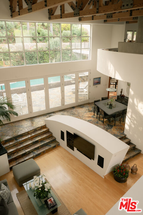 Stunning architecture of this Westwood Hills residence seamlessly blends bold design with effortless livability. Clean lines, sculptural forms, and expansive glass create a dynamic interplay of light and space, while warm wood, sleek stone, and industrial accents add depth and texture. The dramatic double-height living room, framed by oversized windows, flows into a gourmet kitchen and dining area, extending to a landscaped backyard for seamless indoor-outdoor living. The primary suite is a private sanctuary with vaulted ceilings, exposed wood trusses, a fireplace, and a terrace. Spa-like bathrooms with luxurious stone and modern fixtures enhance the home's refined aesthetic. The pristine pool and hot tub are accessible directly from the living room and primary bedroom. The house has been immaculately kept and is ready for its new owner. Custom furniture is available for purchase. A true architectural statement, this home embodies innovation, elegance, and comfort in perfect harmony. Located in coveted Warner elementary school zone and within close proximity to UCLA, Beverly Hills, Brentwood, and so much more...Interested in this Listing?