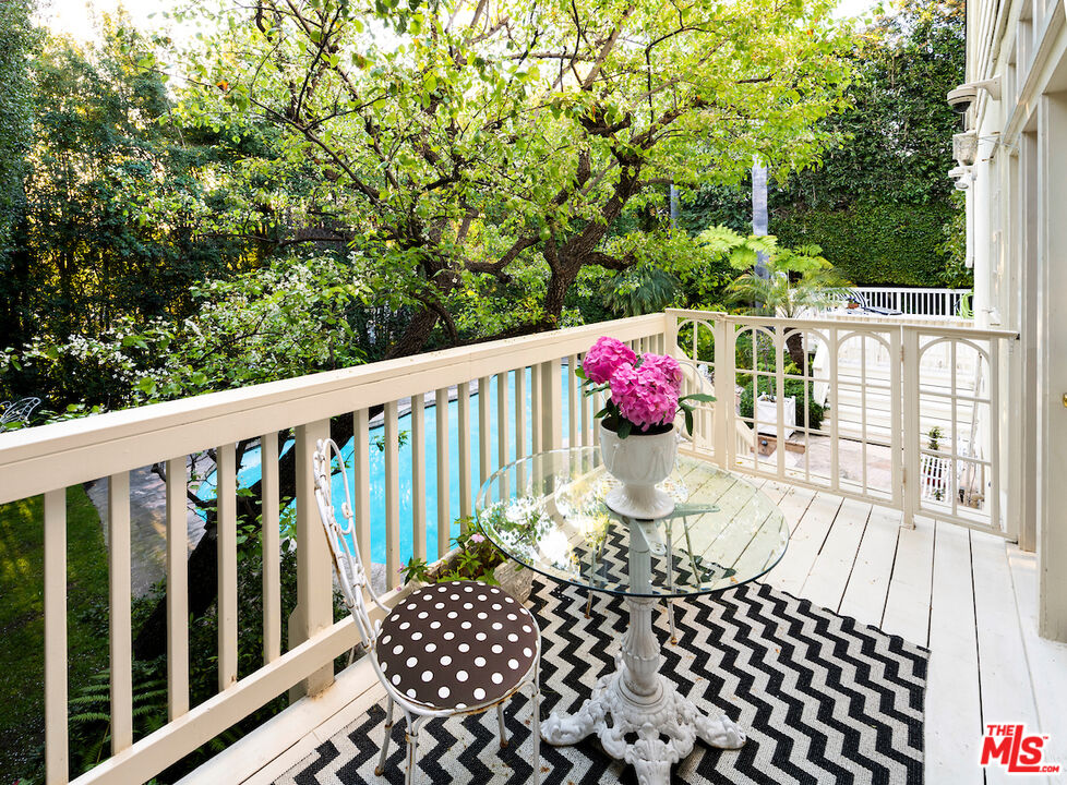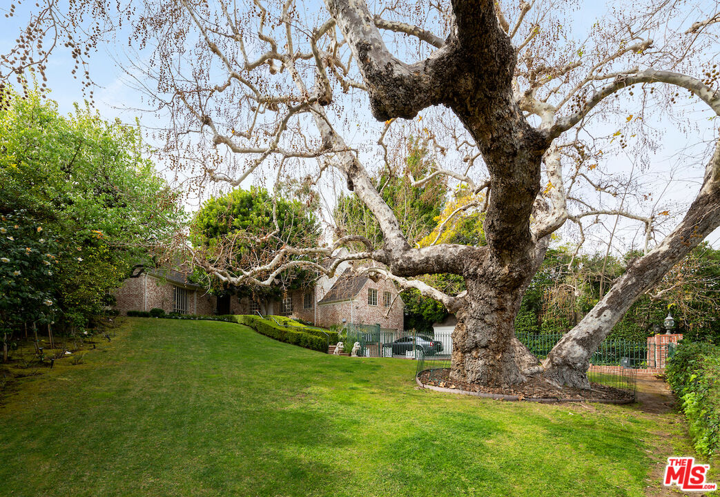 Stunning traditional residence privately tucked behind gates in the heart of Little Holmby. A dramatic stone pathway meticulously lined by greenery welcomes guests into the curved formal entry intricately adorned by hand painted walls. The formal living room, just off of the entry, showcases 10 Ft ceilings, a cozy marble fireplace, and picture windows allowing in an abundance of natural lighting. On the other side of the formal entry is the formal dining room, with access to the yard, that seamlessly flows into the chef's kitchen. Black and white checkerboard tile floors perfectly compliment the stainless steel appliances, countertops, and island in addition to the abundance of white cabinetry. A wood paneled den with a wet bar and fireplace provides an inviting yet polished space to entertain. The broad gallery hallway, lined by a wall of French doors, leads to the primary suite quietly tucked away in the far wing of the house. A considerable walk-in closet, spa like ensuite and a private balcony overlooking the backyard create the primary bedroom retreat. Two additional bedrooms on this level plus two bedrooms upstairs, all with their own bathroom, complete this highly functional floor plan. An expansive garden patio framed by lush greenery offers an outdoor grill and copious seating areas. An in-ground pool and spa are the finish touches to this serene oasis in one of the most highly coveted neighborhoods in Los Angeles.Interested in this Listing?