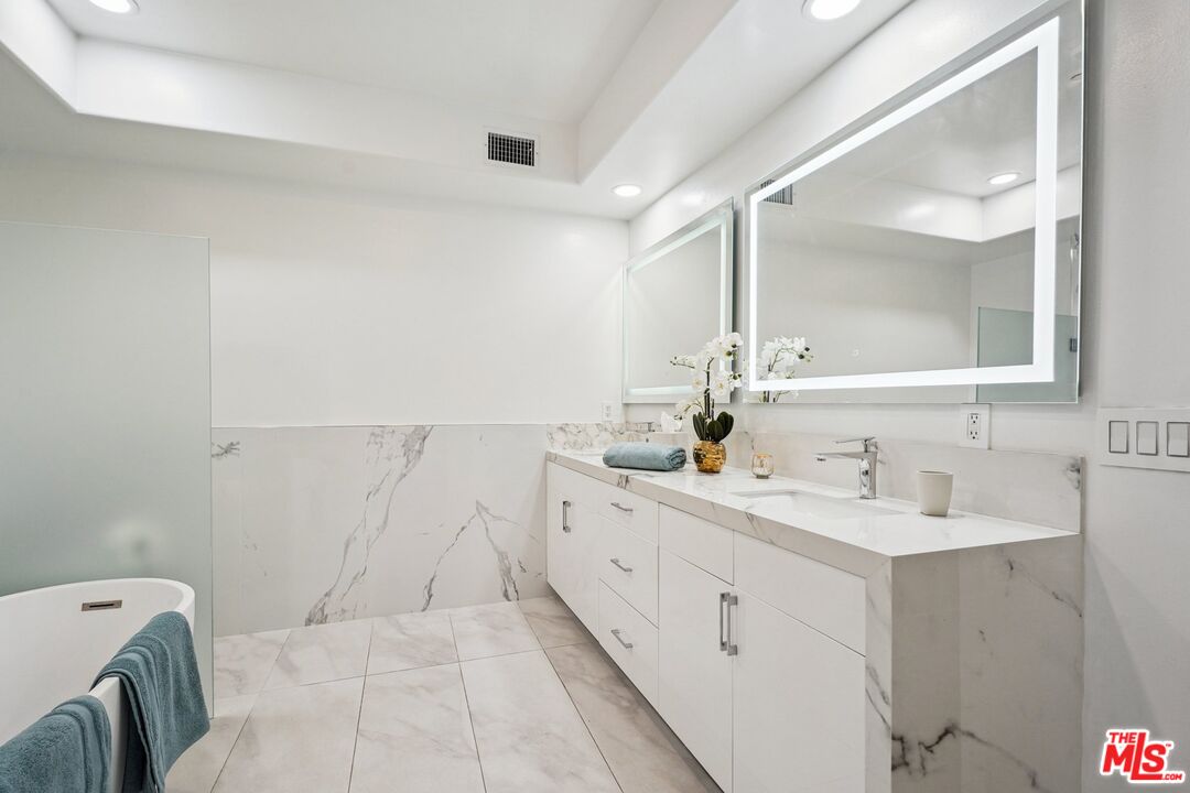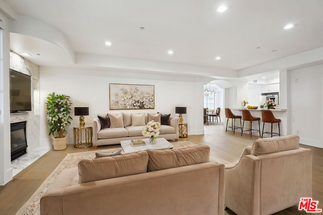 You must not miss this stunningly and completely renovated spacious front facing unit with 2 bedrooms/2.5 baths, in a great Westwood location. The expansive open and bright floor plan highlights an inviting atmosphere throughout. Great room with fireplace opens to front facing patio. Dining room adjacent to kitchen opens to oversized patio, which encompasses the entire length of the unit, and makes for great al fresco dining/entertaining. Kitchen w/high end stainless steel appliances, and both kitchen and all bathrooms with polished porcelain counter tops. Spacious primary bedroom suite with fireplace, walk-in closet w/built-ins, and opulent ensuite bath, featuring frameless shower door, freestanding tub, LED mirrors. Secondary bedroom is amply sized. Additional features include new wide plank wood floors, dual pane windows/doors, recessed lighting, white shaker doors, side by side laundry closet, and so much more. Building has a community gym and guest parking. Great proximity to Westfield Century City mall, Westwood Village and UCLA. Some photos have been virtually staged.Interested in this Listing?