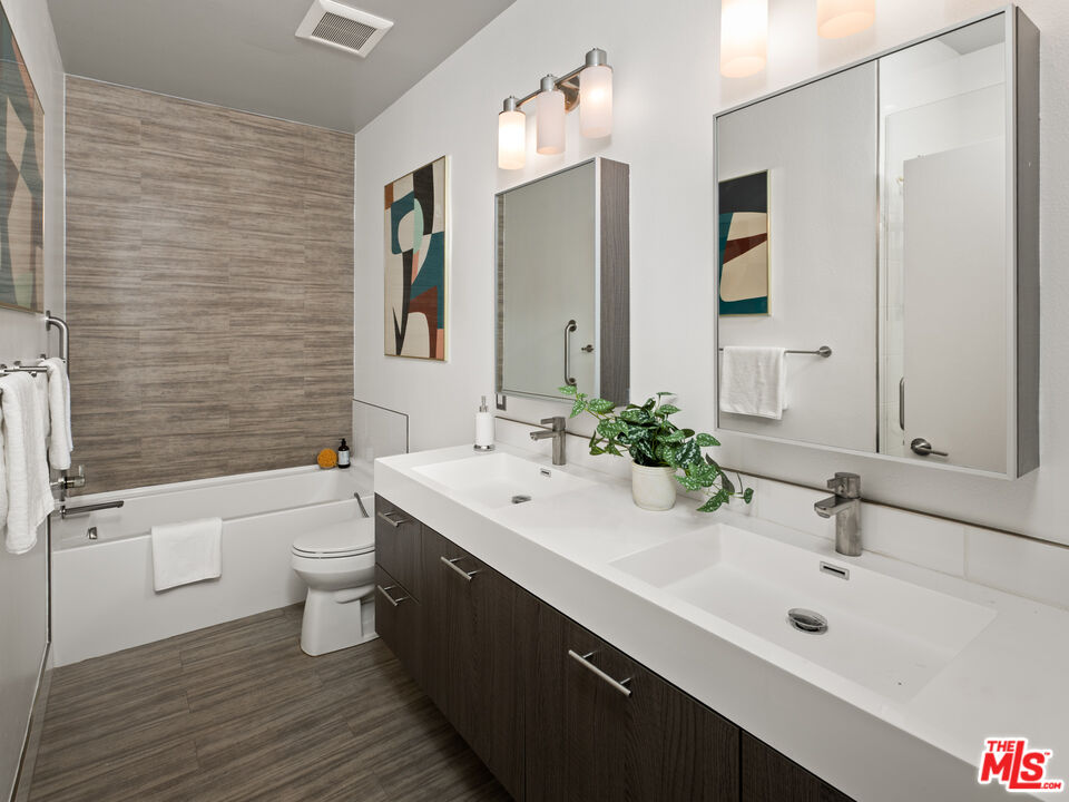 Fabulous remodeled townhome in an exceptional Westwood location! Be wowed...Step into a gorgeous great room with high ceilings, Honed Concrete floors, large living room, balcony & spacious dining area with a coffee/ wet bar. The kitchen is open to the living/dining with stainless steel appliances, a breakfast bar & pantry. Separate laundry room has washer, dryer & lots more storage. There is a formal entry w/powder room & coat closet. Ascend the wood floor staircase to the huge second story with expansive prime suite, walk-in closet, remodeled full bath with separate shower and another balcony. Second bedroom has a double sliding closet and its own remodeled full bath in the hallway. Security building with elevator and 2 car tandem parking. Ashton is the first block south of the Wilshire Corridor, a great place to call home. Easy commute to UCLA & Westwood Village, Century City, Beverly Hills & entire Westside! Security building, elevator, easy to show!Interested in this Listing?