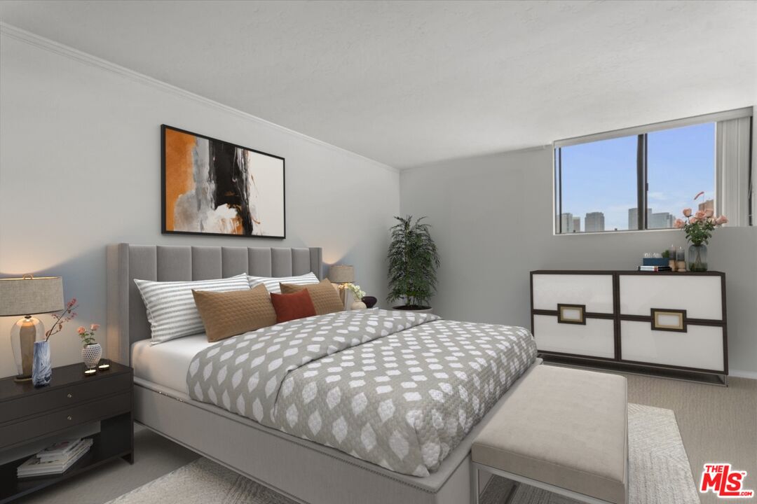 This upper-floor unit, one of the larger floorplans, offers breathtaking, unobstructed city views and is located in the highly sought-after Wilshire Corridor. Set within the newly modernized Wilshire Marquis, the residence features a spacious open floor plan that flows seamlessly to a private balcony showcasing stunning views of the city lights. The unit features two spacious bedrooms and a versatile bonus area that provides the perfect space for a home office or additional lounge seating. The primary bedroom includes a dedicated vanity area and a large walk-in closet. Additional features include dark-wood entry doors, a fireplace in the dining area, wet bar, and in-unit laundry. Residents enjoy a full suite of amenities including 24-hour security and concierge service, gated garage with two parking spaces and ample guest parking, bike storage area, EV charging stations, pool and spa, BBQ area, sun deck, outdoor garden patio, gym with sauna, recreation room, and three tennis courts, two of which are located on the rooftop with sweeping panoramic views. Conveniently located within close proximity to UCLA, Westwood Village, Beverly Hills, Century City, top-rated schools, shops, restaurants, theaters, and with easy access to the 405 Freeway. *Unit photos have been virtually staged*Interested in this Listing?