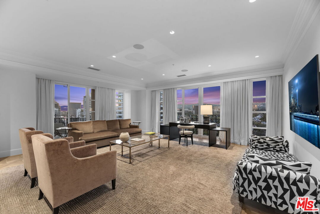 Unrivaled luxury at the prestigious "The Wilshire," the most covered building on the corridor. This breathtaking three-bedroom condominium offers an unrivaled living experience meticulously renovated by a globally recognized designer. As you step into the expansive living space, you are immediately greeted by sweeping ocean vistas and mesmerizing views of the exclusive Bel-Air neighborhood, framed through floor-to-ceiling windows that bathe the interior in natural light. Each detail in this luxurious condo has been thoughtfully curated, from the custom-built cabinetry and high-end finishes to the state-of-the-art kitchen appliances, ensuring elegance and functionality. The open-concept design seamlessly connects the living, dining, and kitchen areas, creating an ideal environment for entertaining while enjoying the backdrop of the Los Angeles skyline and the tranquil Pacific Ocean. The main suite is a sanctuary of comfort and style, featuring a spacious walk-in closet, a spa-like bathroom with dual vanities, and a private balcony where you can savor your morning coffee while soaking in the breathtaking views. The additional two bedrooms are generously sized, offering ample space for family, guests, or a home office, each with access to luxurious bathrooms designed with the utmost attention to detail. Residing at The Wilshire, you'll have exclusive access to a suite of premier amenities, including 24-hour security, valet parking, a state-of-the-art fitness center, and a sparkling pool. This residence is more than a home; it's a lifestyle choice for those who seek unparalleled beauty, comfort, and convenience in one of Los Angeles' most sought-after addresses.Interested in this Listing?