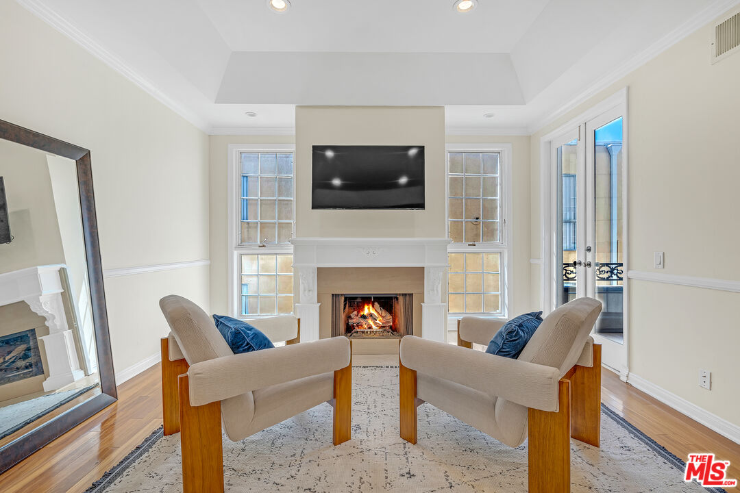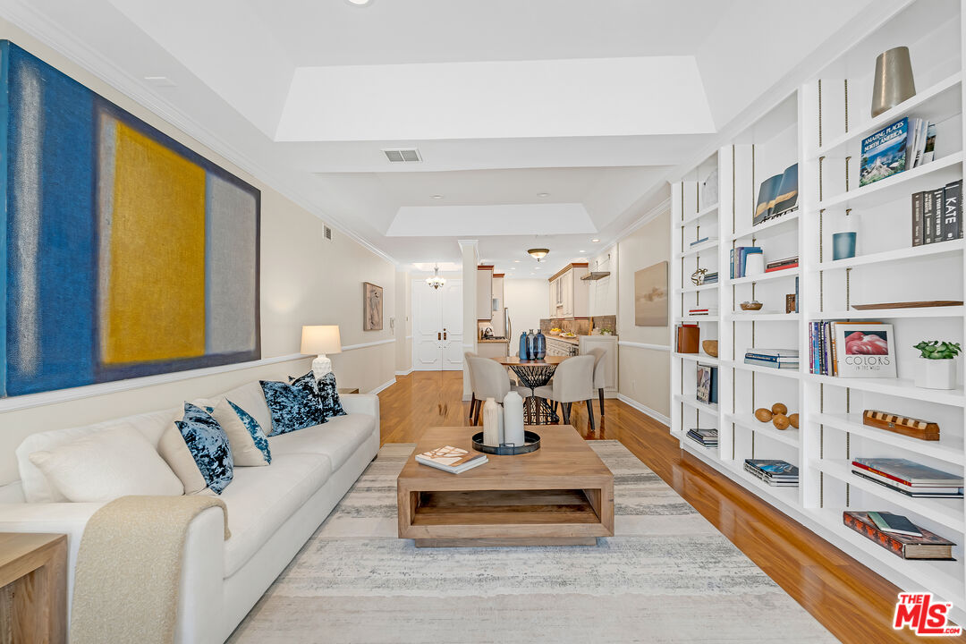 Welcome to this bright and spacious 2-bedroom, 2.5-bath condo in the heart of Westwood, just three blocks from Westwood Village and minutes from UCLA. Nestled on a picturesque tree-lined street, this elegant residence features soaring 10-foot ceilings, crown moldings, French doors, and rich hardwood floors throughout the living, dining, and hallway areas. The open living room boasts a wood-burning fireplace and opens to a covered balcony, perfect for morning coffee. The kitchen is equipped with a gas range, Silestone countertops, stainless steel appliances, and a built-in wine fridge. Additional highlights include a stunning floor-to-ceiling built-in bookcase, in-unit washer and dryer, central heat and A/C, and ample storage throughout, including a an additional storage room. The pet-friendly building offers outstanding amenities: 12 guest parking spaces, a spa, gym, sauna, and two secure tandem parking spots in a gated garage. Residents enjoy enhanced peace of mind with controlled building and elevator access, as well as earthquake and wildfire insurance. A rare opportunity to own a beautiful unit in one of Westwood's most desirable and convenient locations.Interested in this Listing?