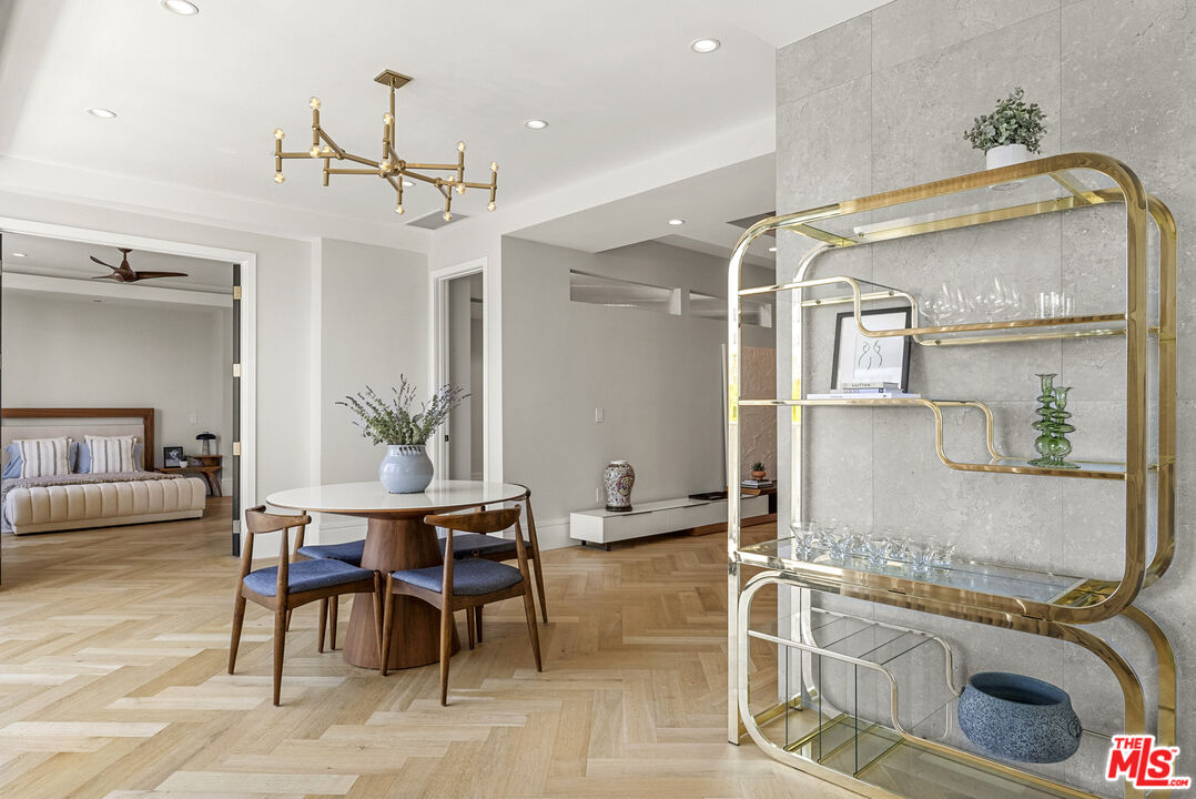 Welcome to Wilshire Terrace. As the very first residential tower constructed on the Wilshire Corridor, this property is a classic example of mid-century 1950s architecture. Built with robust concrete and steel, it features high ceilings and generous floor plans that balance iconic original design with modern conveniences. The porte-cochre, lobby, elevators, and common areas have all been thoughtfully and fully restored, all set within a beautiful and well-maintained two-acre private estate. Amenities include a wonderful pool and jacuzzi spa, a well-equipped fitness center, hair salon, updated common spaces throughout, and a 24-hour valet service along with full-time doorman. The building is also pet-friendly, welcoming residents and their four-legged companions.Apartment 2F has been fully and tastefully renovated, offering over 2,400 square feet with three spacious bedrooms, each with an en-suite bathroom, plus an additional powder room. The primary suite features a large walk-in closet, soaking tub, and dual-sink natural quartzite and natural wood vanity.High-end appliances and finishes include a Gaggenau refrigerator/freezer, two Sub-Zero wine refrigerators, dual dishwashers, premium range, Duravit toilets, Graff fixtures, custom cabinetry, European oak flooring in the main living areas and primary bedroom, and wool carpets in the secondary bedrooms. Facing due south, the residence receives ample natural light throughout the year and overlooks the pool and surrounding grounds. Residents benefit from Wilshire Terrace's full-service amenities, including utilities, high-speed internet, cable, and security. The apartment also comes with two, non-tandem fully secure parking spaces and a separate, generously-sized storage unit. Conveniently situated, the property is literally minutes from Beverly Hills, Century City, and UCLA, with Holmby Park just a ten-minute stroll away.Interested in this Listing?