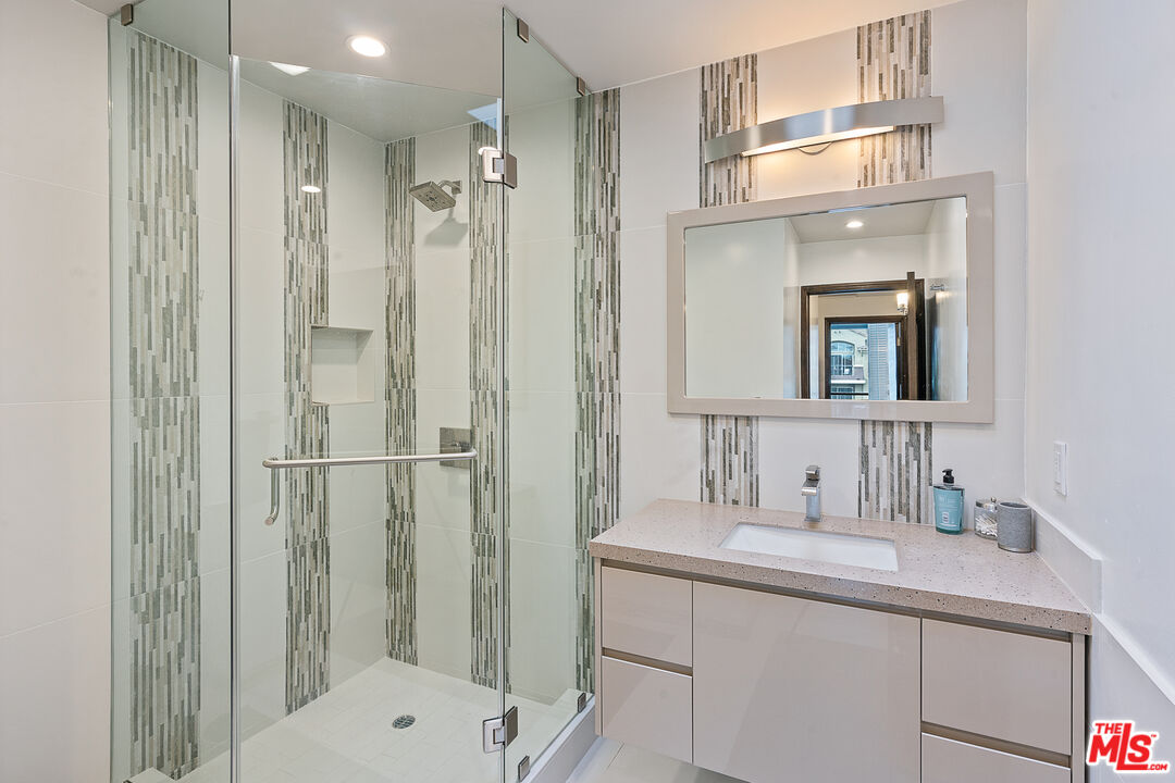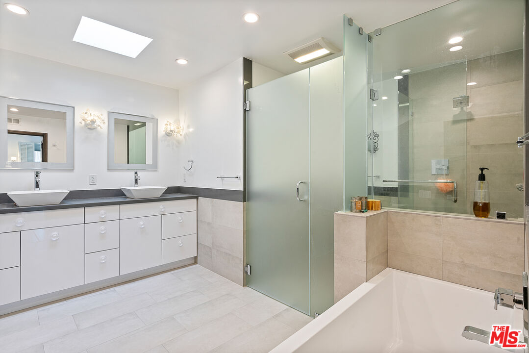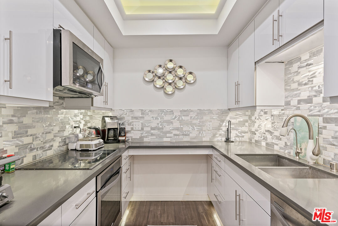 Spectacular Penthouse with cathedral ceilings, large skylights, and an abundance of light. This front facing 3 bedroom top floor unit incorporates a spacious open concept living, dining, and family room. Fully remodeled throughout with sleek kitchen and bathrooms. The kitchen is complete with stainless steel appliances, contemporary countertops, breakfast bar and wine cooler. Master suite has large window, walk-in closet, and spacious master bath with separate shower and soaking tub. Two additional bedrooms with oversized windows and tons of light. Patio off of the living room. In unit laundry, 2 car secure parking with EV charger, and large community pool.Interested in this Listing?