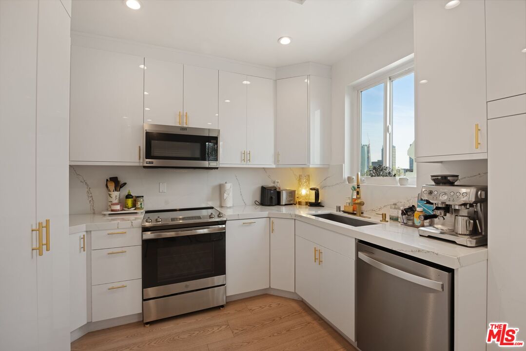 Welcome to this remodeled 2-bedroom, 2.5-bath residence in the heart of Century City/Westwood. Soaring double-height ceilings & oversized windows flood the living spaces with natural light, highlighting the sleek open layout and modern finishes throughout. The dramatic great room offers impressive scale, wide-plank wood flooring, and a custom fireplace, perfect for entertaining or unwinding in style. The updated chef's kitchen features high-gloss cabinetry, stainless steel appliances, and brushed-brass hardware that adds a luxe touch. A waterfall-edge peninsula doubles as a casual breakfast bar with picturesque views. The expansive primary suite is a serene retreat with a balcony, walk-in closet, fireplace, and a spa-inspired bathroom boasting dual vanities and an oversized shower. Enjoy premium amenities including a sparkling pool, relaxing spa, gym, and sauna. Two-car side-by-side secure parking and in-unit laundry offer everyday convenience. With Century City skyline views and close proximity to world-class shopping, dining, and UCLA, this turnkey home delivers the ultimate Westside lifestyle.Interested in this Listing?