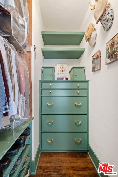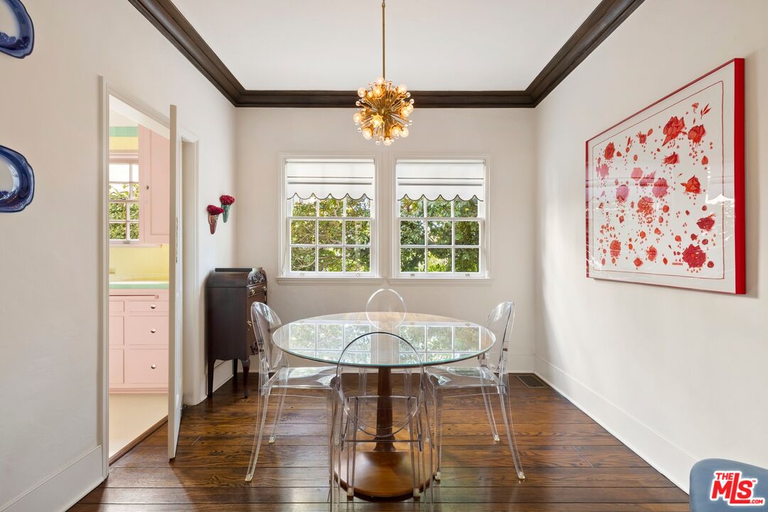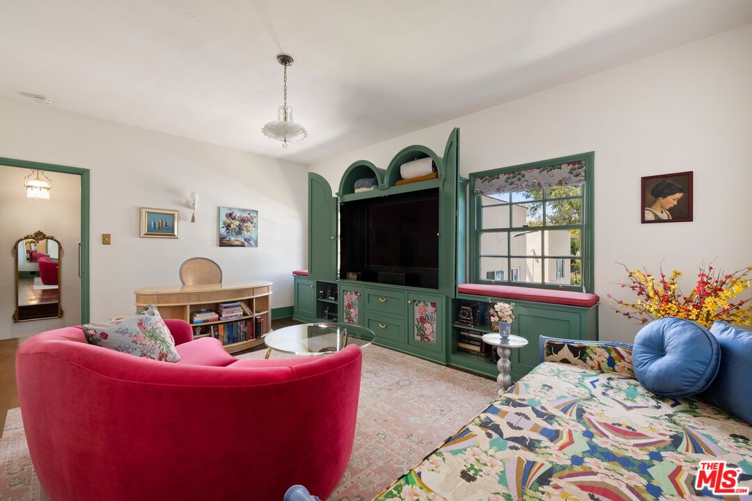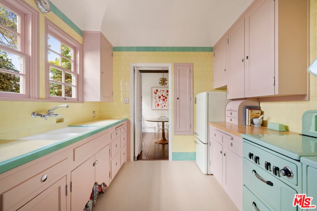 When Westwood was a village . . .. . . many charming and marvelously-scaled courtyard apartments dotted the gentle hills and curving streets of the vibrant academic community. One of these still stands today: The Villa Campana, a 1930's Monterey Colonial complex of two-story villas organized around a wooded surprise of a garden. From the massive, oaken gates, flagstone pavers meander through the shaded garden to Home #8 and its cozy entry terrace. The front door with its stained glass welcomes you to the generously scaled living room with its lovely bay window and fireplace with new mantelpiece. The dining room leads from here to the kitchen - its cabinetry, linoleum floor, tilework and appliances restored to their vintage authenticity.Upstairs are two large bedrooms: Primary and secondary which doubles as a study/media room. This second level peeks out across to tree-top views to hills beyond. The adjacent bathroom explodes with the color of original tile work, plumbing appliances, and an early 20th century style shower door.Custom woodworking interwoven with the thoughtful color palette. Sunny and private pool. Hardwood floors, vintage lighting and fixtures abound. New window treatments. Powder room, in-unit laundry, carport. Updated plumbing and electrical systems. Unique architecture in a true urban oasis.Interested in this Listing?