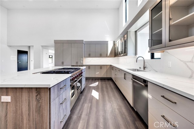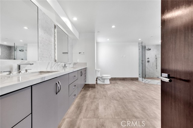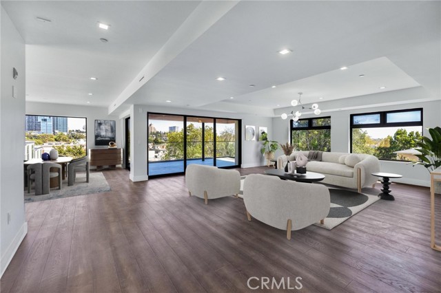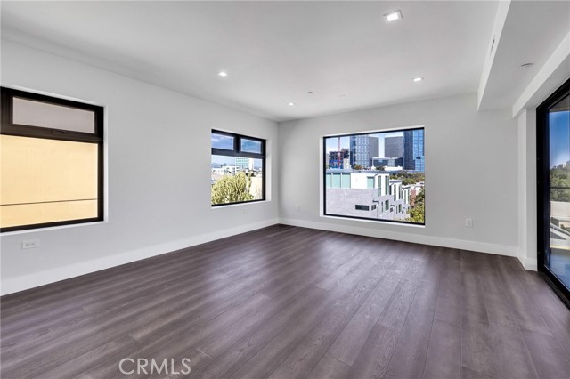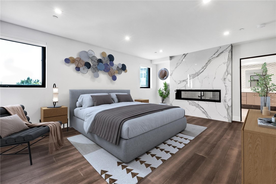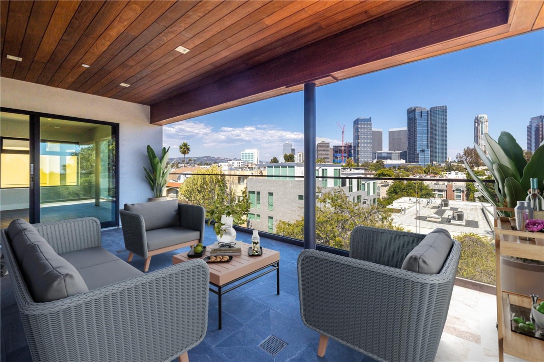 Looking for the perfect floor plan for extended family or roommate situation? Check out modern two story penthouse with a primary suite on each floor in addition to 2 other bedrooms! Step out of elevator into stunning modern living with the ease of a condo - Penthouse retreat in the heart of the city. High quality finishes can be found in this 2 story home featuring exclusive private rooftop terrace highlighting panoramic views of the city - all the way to Hollywood Hills. Main lower level bedroom with double sided fireplace to warm up by opens to soaking tub on other side. Two more bedrooms complete with own baths plus guest bath and laundry closet allow for easy living. Walk up stairs to massive second main bedroom complete with a sitting area, gym/office, queen size walk-in closet, double sink vanity, separate shower and soaking tub! Chef's kitchen includes gorgeous quartz counter top, Wolf 6 burner stove w/double oven, Sub Zero Fridge and 60 bottle wine cooler, ample storage with self closing feature, all under a soaring ceiling. Living room and dining room have wall of windows and slider opening to balcony all sharing the city skyline views! Walk up the stairs to your private roof top retreat and feel like you are top of the world. This is a must see home in a quiet neighborhood minutes from shopping and dining. Elegant, modern living with all the amenities you can appreciate from the moment you enter you your private world. Come check us out!Interested in this Listing?