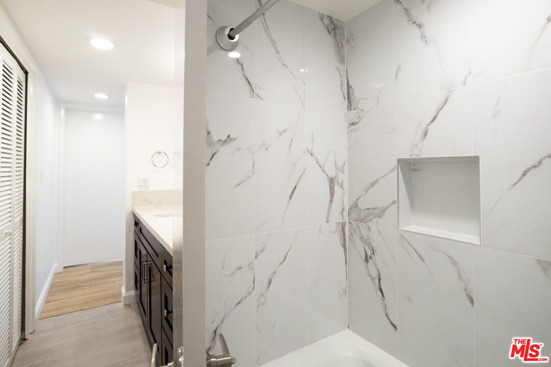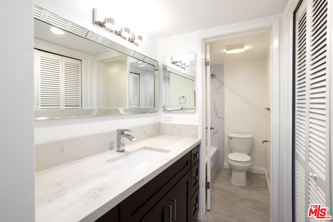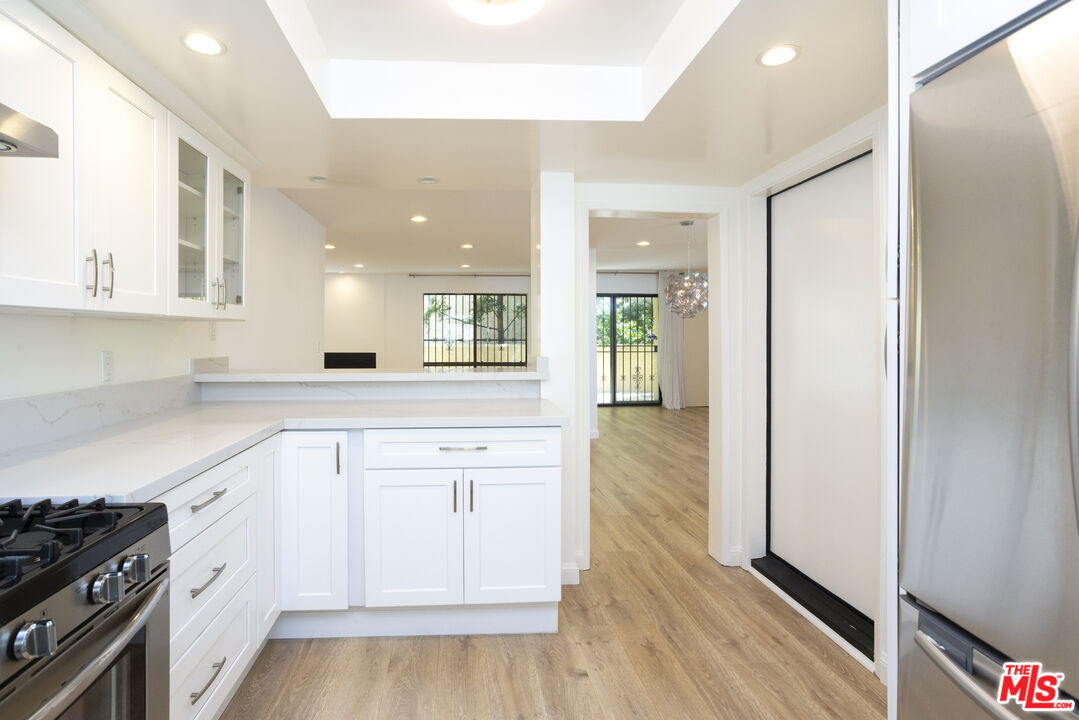 Elegant, bright and airy 2 bedroom home completely remodeled with a large living room area, fireplace, and dry bar. Gourmet kitchen features stainless steel appliances, quartz countertop, custom cabinets, soft close drawers and built-ins. Stunning master bedroom with 2 big closets, one walk-in closet and a balcony. Elegant master bathroom with dual sink, quartz counters, bathtub/shower. Huge second bedroom with a big closet. The unit features central heat/air, wide wood floors throughout, recessed lighting, high ceilings, a dry bar, big coat closet, washer and dryer, 2-car tandem parking and more! Gated/secured building. Close to UCLA, Beverly Hills, and all the great shop and restaurants on Westwood and Santa Monica.