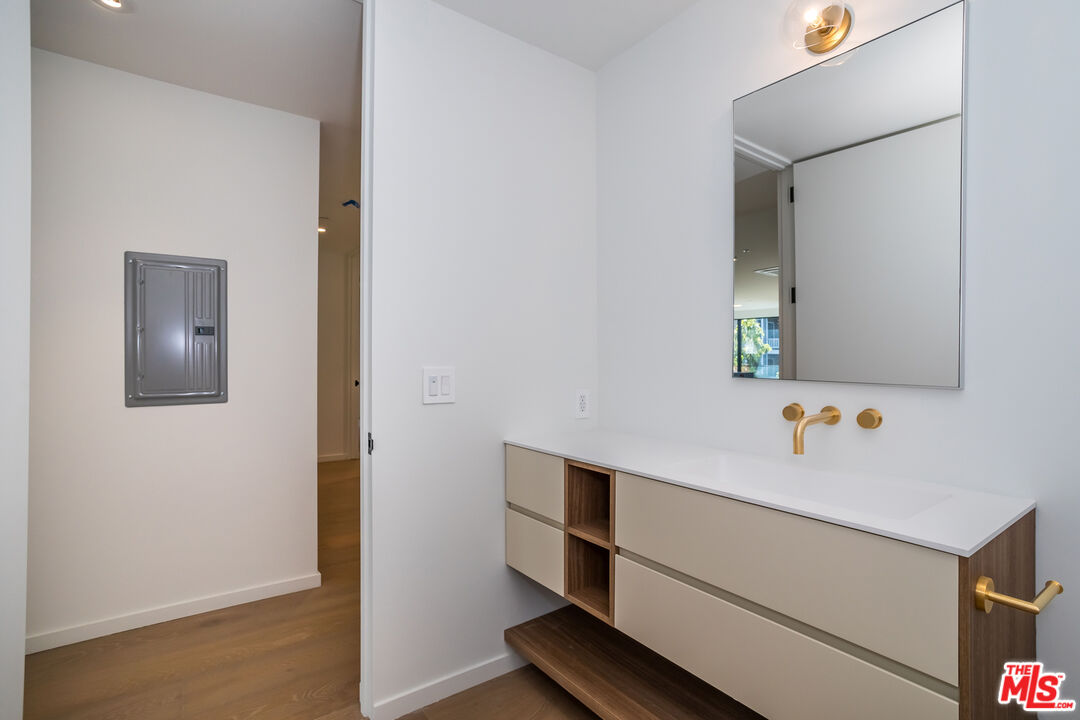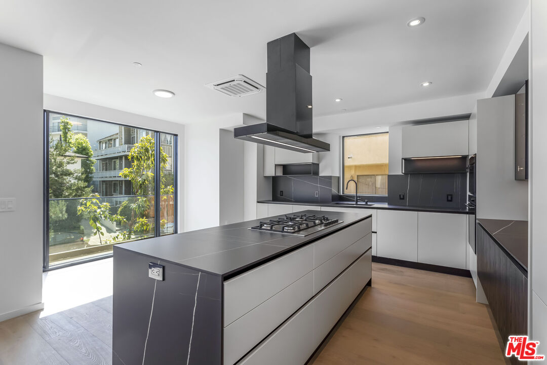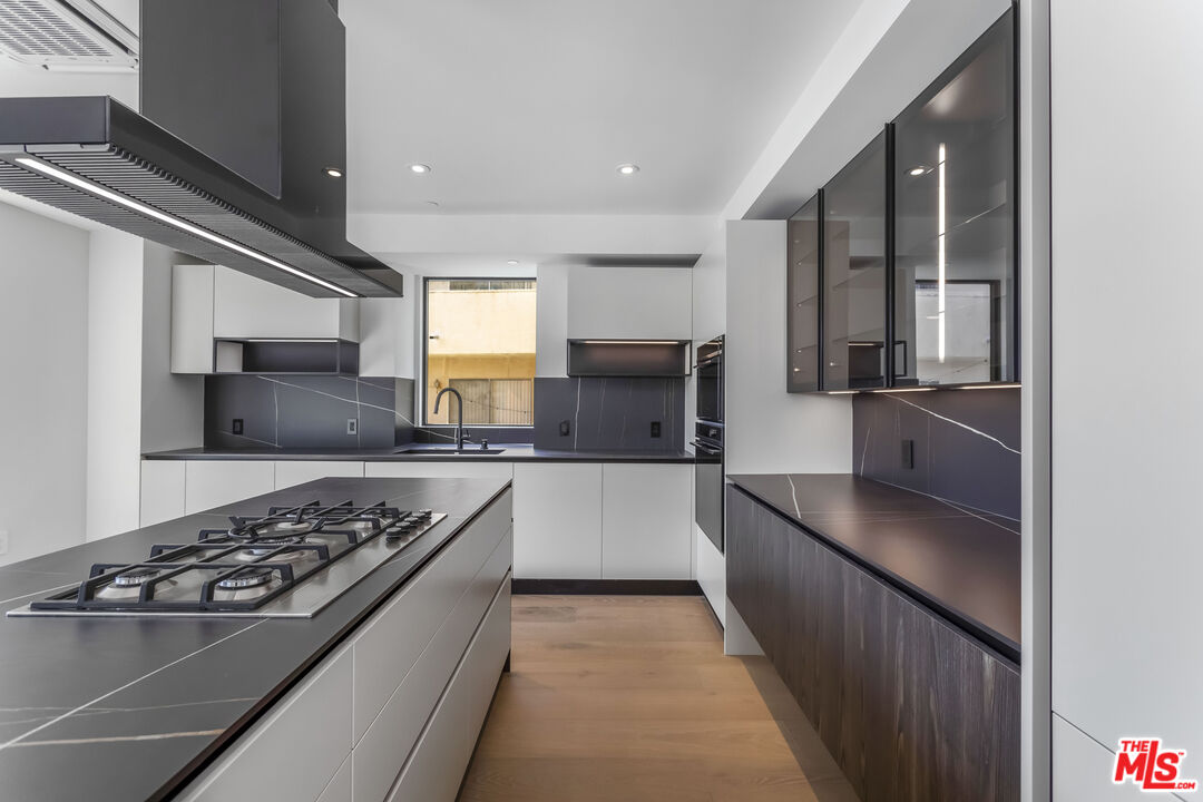 Gorgeous, brand new 2,310 sq. ft., 3 bedroom, 3.5 bath, single story luxury condo in an intimate 12 unit boutique building. Centrally located near Beverly Hills, Century City & UCLA this unit features an open concept floorplan, wide-plank European Oak floors, oversized glass widows opening to a private balcony & high end finishes throughout. Kitchen cabinetry is Italian designed Armony, w/Italian porcelain countertops & a sleek Fisher & Paykel appliance suite w/fully integrated refrigerator/dishwasher. Modern fireplace in Living Room, side by side washer/dryer w/sink in hall closet & double doors to serene primary suite w/custom walk-in closet & floor-to-ceiling windows. Spa-like primary bath dazzles w/quartz countertops, double vanities, matte lacquer cabinetry & Phylrich designer fixtures. Additional features include smart-home Butterfly security system, 24-hour monitored cameras & your own private 3 car garage (w/a double & a single garage door.)