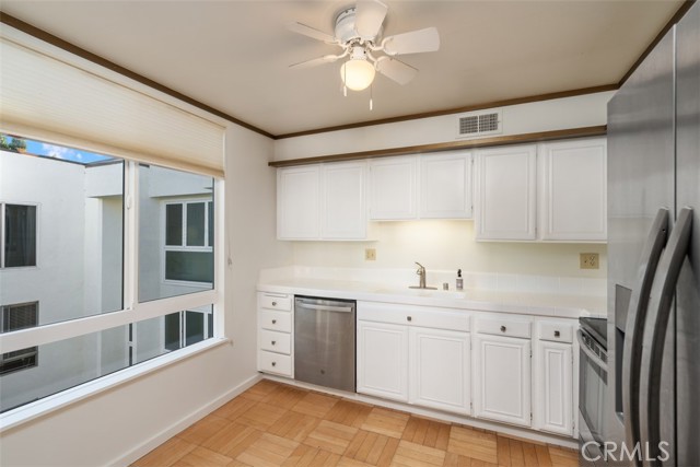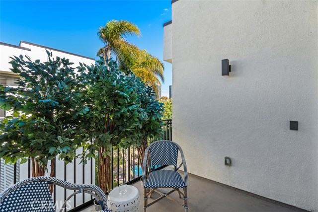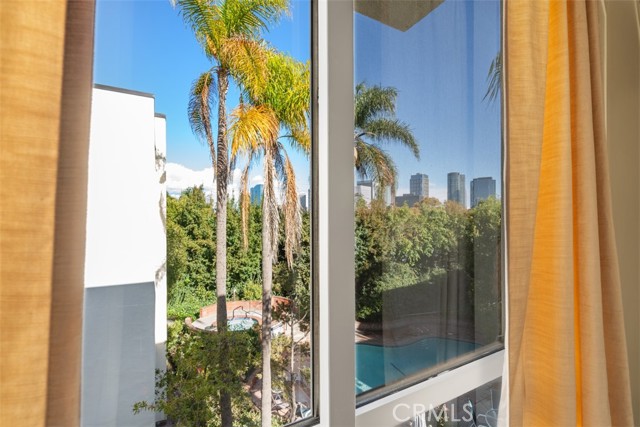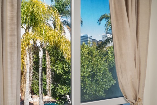 Experience upscale living in this GlenRidge Townhomes penthouse. Wonderful back-facing, corner unit with no one above, offering incredible character, vaulted wood-beamed ceilings, and expansive windows showcasing breathtaking Century City and treetop views. Step into a tiled entryway with a coat closet and a large, elegant powder room featuring a glass bowl sink. The dramatic living room boasts soaring ceilings, a cozy fireplace, and a large sliding glass door leading to a private balcony perfect for enjoying spectacular city views. The formal dining area features stylish paneled walls and seamlessly connects to the sunny kitchen, complete with bamboo flooring, stainless steel appliances, built-in microwave, and tiled countertops and new refrigerator. The second bedroom offers versatility as a home office, guest room, or cozy retreat, featuring a fireplace, closet, and stunning city views. The spacious primary suite includes crown molding, two closets (including a walk-in with built-in shelving), and an en-suite bathroom with a skylight and tile countertops. Also a private laundry area with stackable unit and built-in shelving adds lifestyle convenience. This penthouse offers only one shared wall and comes equipped with central AC/heat. The resort-style community features a sparkling pool & spa, secured tandem parking for two cars with storage, and a pet-friendly policy. Located in an unbeatable location near Westfield Century City Mall, UCLA, and Beverly Hills, and within the sought-after Fairburn Elementary School district.Interested in this Listing?