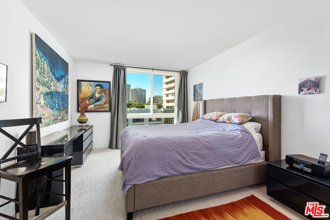 This top floor, light, bright, end unit is conveniently located near Century City, UCLA, Fox Studios, and Beverly Hills. There is so much to love about this unit! Upon entering the living room, you are greeted by a vaulted, beamed ceiling and windows spanning the entire wall, providing light throughout the day. Next to the living room is a separate dining area and an extra-large balcony looking out to a view of the city lights from the Wilshire Corridor. You can enjoy this beautiful view from every room! The galley style kitchen features great cabinet space, a newer dishwasher, and newer refrigerator. Behind the kitchen is a separate office space and laundry area with a full-sized washer and dryer. The bedroom is very spacious and has a large walk-In closet and dressing area. The tastefully remodeled bathroom has a large shower, double sinks, and lots of cabinet space. The building exterior was renovated, and the resort-like grounds include a pool, spa, sauna, extra storage, and guest parking. Parking space has an EV charger. Tenant pays for EV charges.Interested in this Listing?
