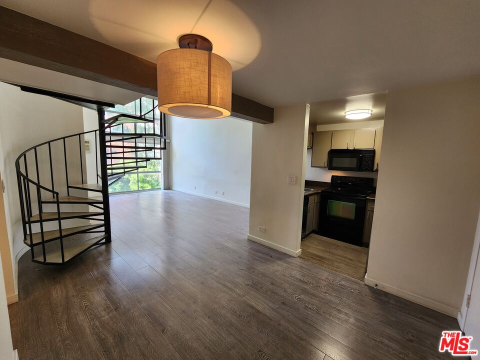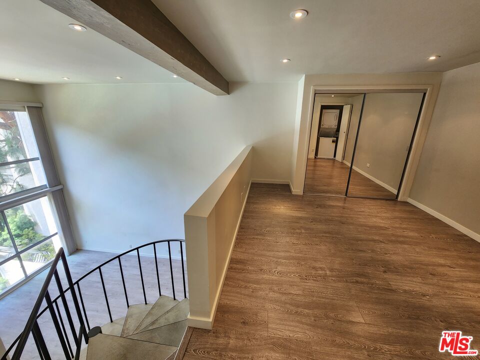If you want to live in hip boutique hotel...look no further. This beautiful resort-style condo building is centrally located in the heart of Westwood. The complex features a 24-hour security guard, package delivery check-in service, on-site manager, fitness center with a gym, steam room and sauna, a party room with a kitchen, conference room and more. Imagine relaxing in the outdoor space that features; lush landscaping, waterfalls, outdoor lounging areas, pool and spa, koi ponds and friendly turtles. This modern loft-style condo has soaring ceilings and two story windows that provide picturesque views of the trees and the tranquil pool courtyard. The wide-open floor-plan inspires casual living and spontaneous entertaining. The living room features a spiral staircase that leads to the open loft, which is often used as the third bedroom or an office/den space. This loft leads to one of the two primary en-suite bedrooms; complete with a walk thru closet, modern full bathroom with a soaker tub and the same picturesque views of the tranquil courtyard. The first floor en-suite bedroom and bathroom are tucked off to the side, allowing for a nice separation of space between the bedrooms. The condo also features newer hardwood floors and a stackable washer/dryer closet. Assigned two car parking in the gated and secured garage is included. A large park with tennis, basketball courts and dog park are conveniently located across the street. All this and you are just moments away from UCLA, Westwood Village and the upcoming purple line subway station. EV car charging is available onsite. Rent includes electricity, water & trash. Currently Tenant Occupied, available to move in at the beginning of July.