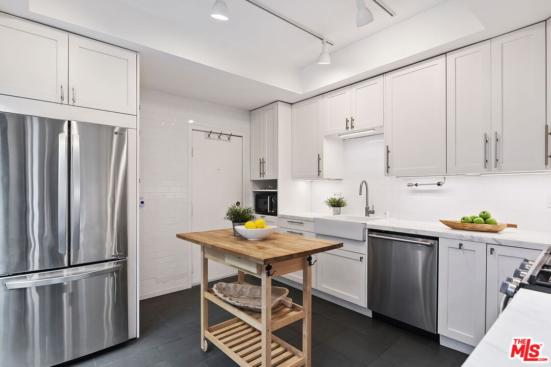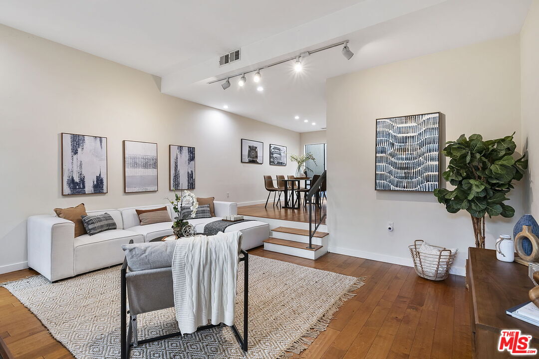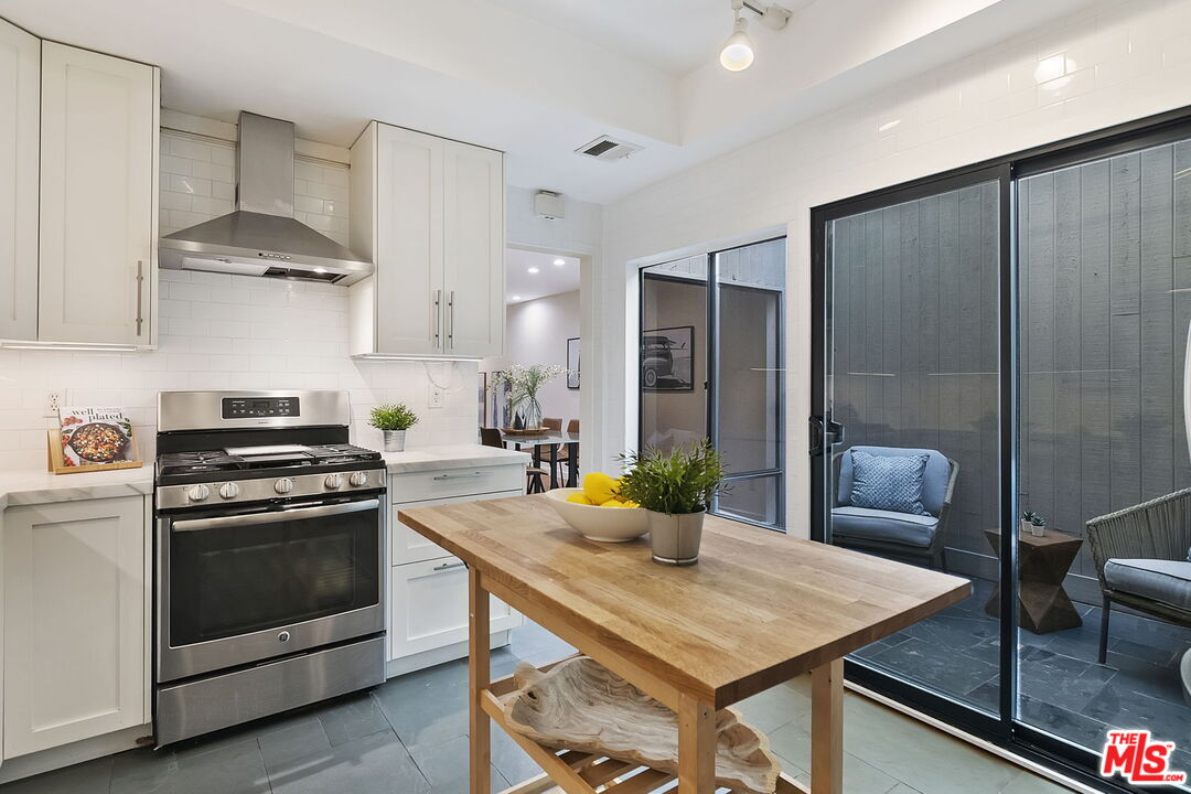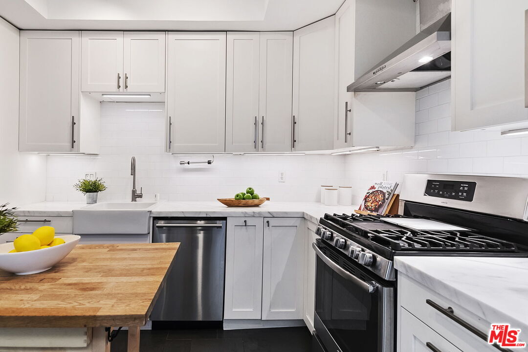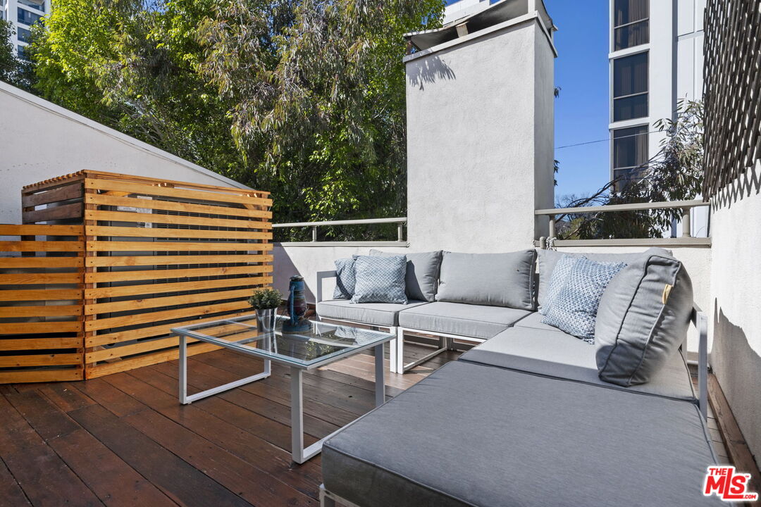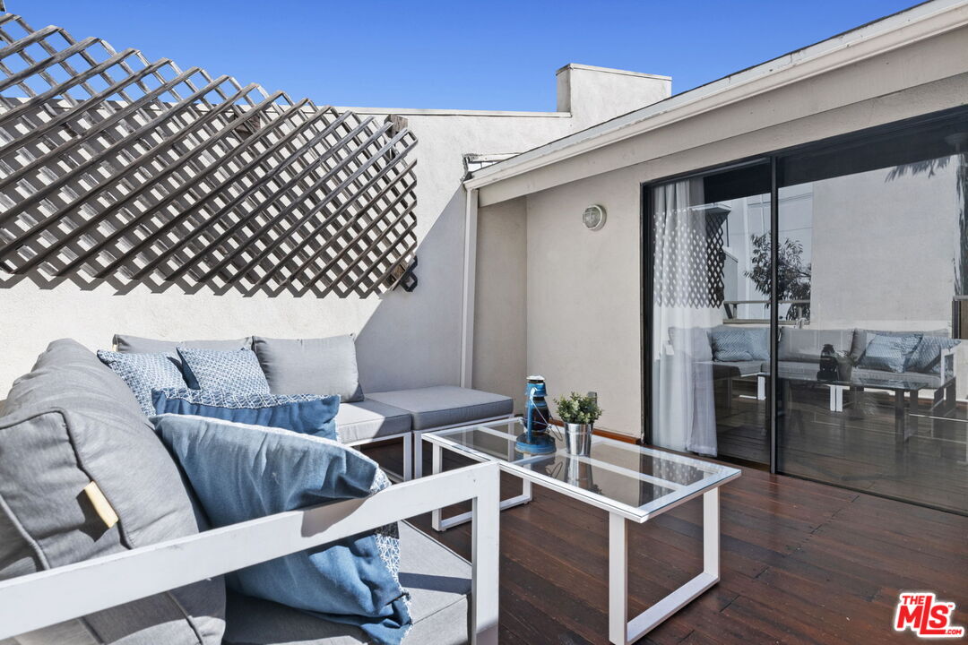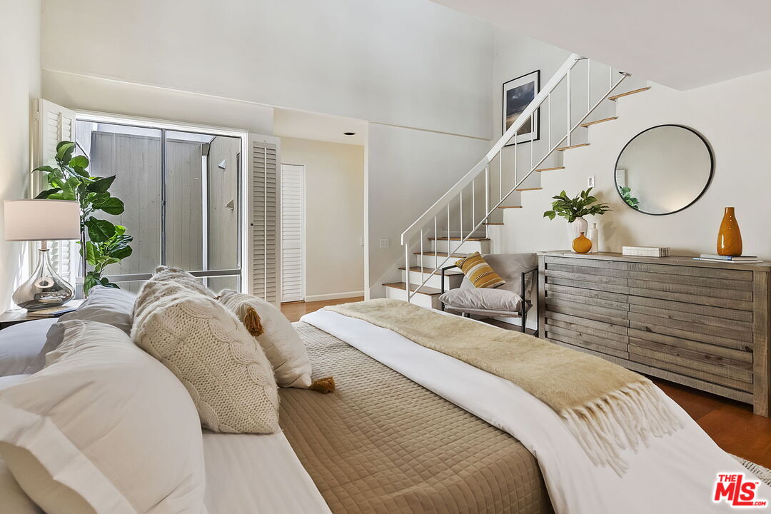 Beautifully updated 2 bed/2.5 bath + loft townhouse with 3 private outdoor areas in prime Westwood South of Wilshire Blvd. location in desired smaller 14-unit building. Enter through side walkway to spacious slate tiled patio to your own front door to unit. Incredible volume with high ceiling in living room with recessed lighting, fireplace and large windows overlooking front private patio. Step up formal dining room with built-in shelves and large windows overlooking interior courtyard atrium. Updated powder room off living room and dining room. Stunning remodeled contemporary kitchen with honed marble countertops, stainless steel appliances including gas range and oven, subway tiled walls, slate-tiled flooring and newer cabinetry throughout. Kitchen also overlooks and opens to atrium courtyard and has a back door for easy access to 2-car tandem parking. Upstairs includes a grand primary suite with vaulted wood-beamed ceiling, large windows with shutters looking into atrium and a 3rd level loft (ideal for home office), walk-in closet and rooftop wood finished deck overlooking greenery and trees. Primary bathroom includes stacked washer/dryer, updated floating sink and tiled shower. 2nd bedroom with large windows, plantation shutters and a full bath with subway and quartz finishes. Additional features include hardwood flooring throughout, newer system central ac/heat, additional storage in garage. Ideal close proximity to Westwood Village retail and restaurants, UCLA, Century City & Beverly Hills. Fairburn Elementary School. Available immediately!Interested in this Listing?