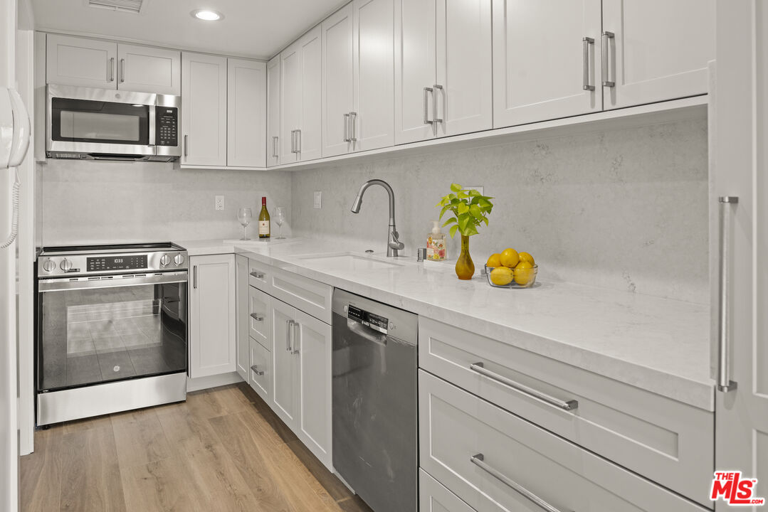 Be the first to enjoy this fully remodeled, just completed, stunning, designer condo in the prestigious Churchill Condominiums on the Wilshire Corridor. Every detail has been meticulously crafted, making this 1 bedroom/1 bath, 1100 sq ft unit an exceptional showpiece for you to call home. The open floor plan with full-view balcony welcomes the bright ambient light of day and the intriguing night lights of the neighboring Westwood Hills. Luxury Wood Vinyl flooring, recessed lighting with dimmers, and custom window shades all add to the ambiance of this unique home. The well equipped kitchen features GE appliances, Microwave, Refrigerator and Bosch dishwasher as well as the ever so efficient quartz counters. The bathroom's beautiful marble double vanity with new commode and linen storage closet adjoins the bedroom and includes an impressive amount of closet space for maximum organization. Upgraded details include all new interior doors, lighting, and the best of all pluses is your in-unit stacked Asko Washer/Dryer to ensure your at-home conveniences are complete. Residents of The Churchill enjoy a collection of resort-style amenities, including 24-hour concierge & doorman services, valet parking with 5 electric vehicle charging stations, resort-calibor pool & spa, locker rooms with shower & sauna, fitness center, residents' lounge/social room and a sizeable additional storage locker, rounding out the impressive list of building perks. The lease includes utilities, basic cable, and the premium staff services that make for effortless living. Just minutes from Beverly Hills, Century City, UCLA, Brentwood, and Santa Monica, this exceptional unit offers an extraordinary lifestyle experience. A rare opportunity to enjoy a fully re-imagined, designer residence in one of LA's most sought-after locations. Indeed, be the first to enjoy all that is new and beautiful.Interested in this Listing?