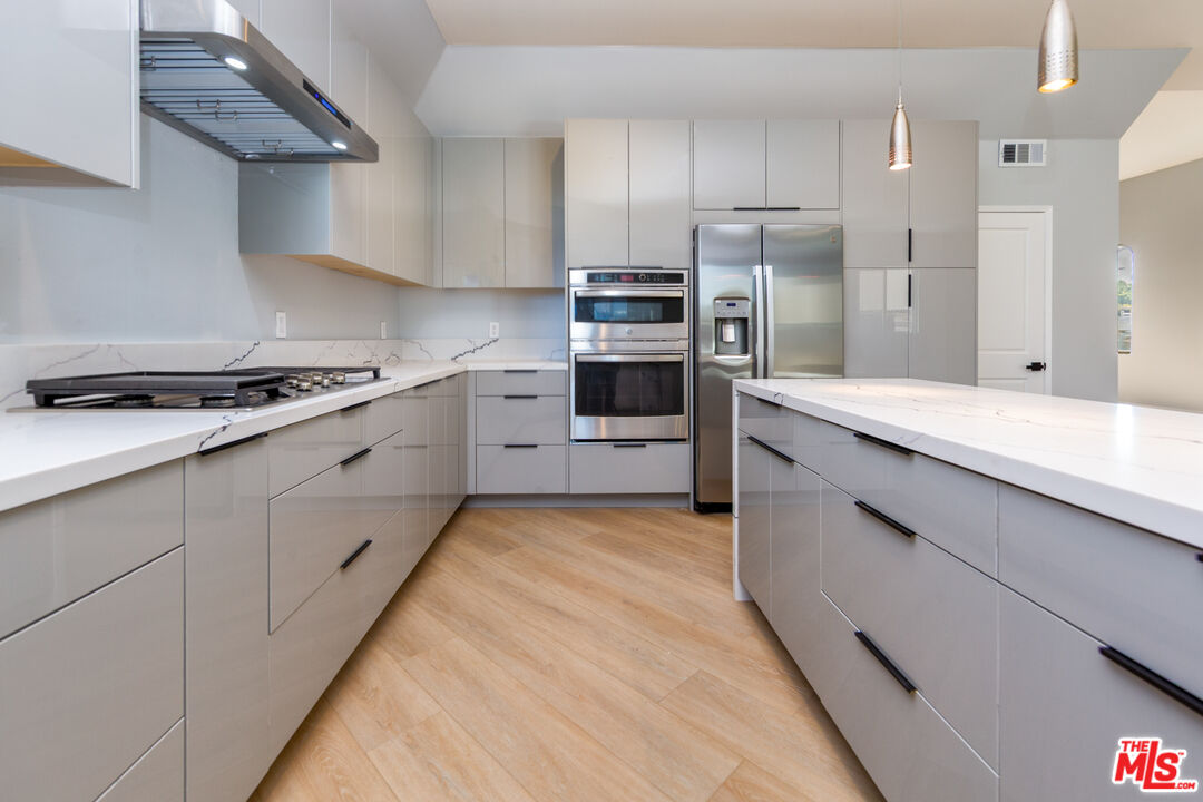 Stunning, fully renovated 5-bedroom, 4-bathroom modern contemporary home spanning over 4,000 square feet. This exquisite residence has been meticulously remodeled from top to bottom, featuring premium materials, exceptional craftsmanship, and breathtaking finishes. Designed to embody luxury at its finest, this home boasts an elegant and sophisticated modern aesthetic. The open-concept layout includes a spacious living room with a fireplace that seamlessly connects to the formal dining area with soaring ceilings. A grand family room leads into the expansive kitchen, which showcases high-end designer cabinetry, stainless steel GE appliances, and a large island with seating. Two bedrooms and a full bathroom are conveniently located on the lower level. A sleek stairwell with glass side panels leads to the upper level, where a versatile open space is perfect for a home office, lounge, or den. The lavish primary suite features a massive walk-in closet and a spa-inspired bathroom with a separate soaking tub, enclosed marble-clad shower, double sinks, and a modern vanity. The upper level also includes two additional bedrooms, one of which serves as a secondary master suite. Additional highlights include designer-selected Wood flooring throughout, Quartz counter tops, recessed lighting, a gated entry for enhanced security and privacy, ample on-site parking, and beautifully landscaped front and side yards. Ideally situated within the coveted Westwood Charter Elementary School District, this home offers easy access to Beverly Hills, Holmby Hills, Rancho Park Golf Course, UCLA, and Century City Mall. It is also conveniently located near premier dining, shopping destinations, and major freeways (10 and 405).Interested in this Listing?
